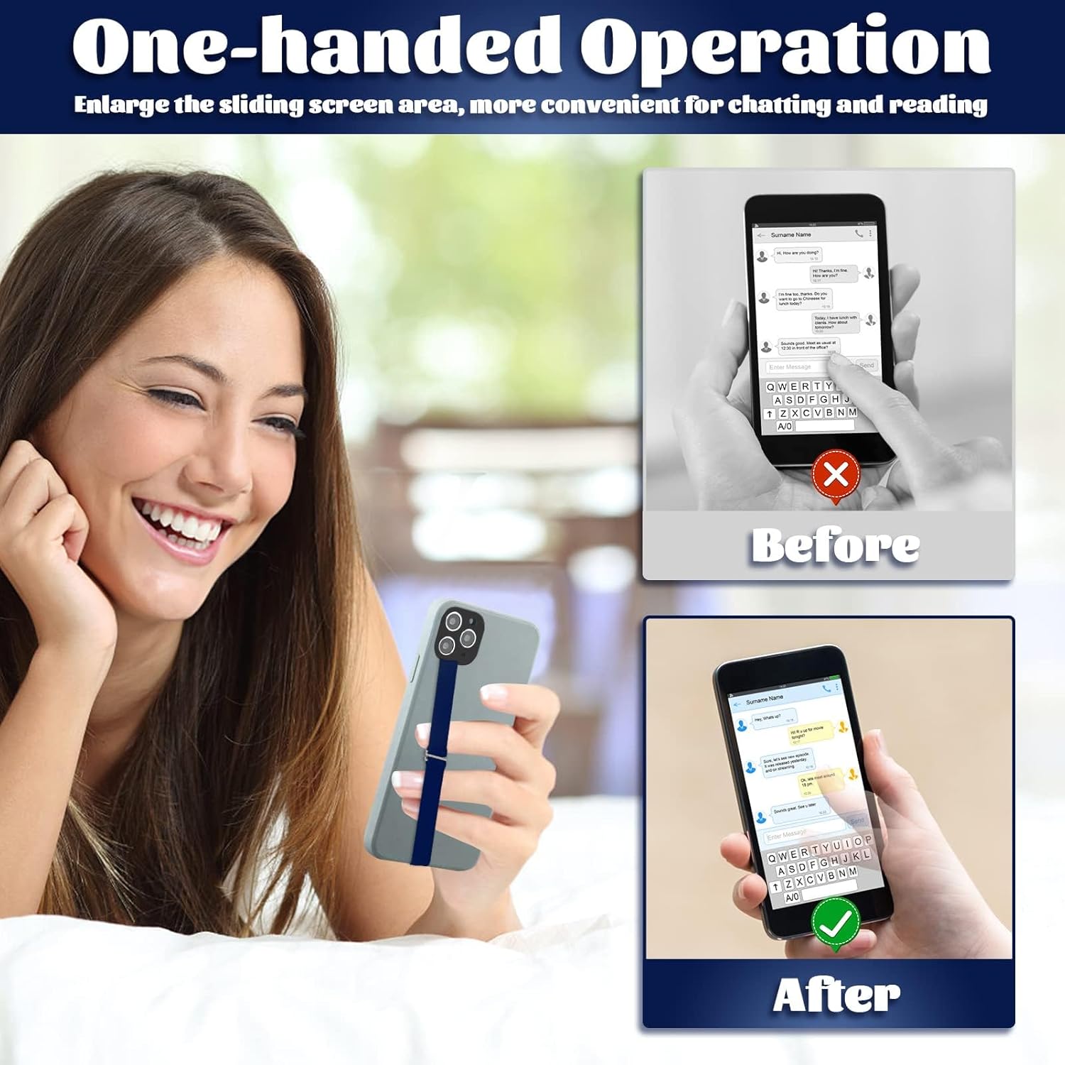 - One-Hand Operating Phone Grip Strap -- Our phone loops for back of phone is convenient and secure for you to hold your smartphone, and it allows you to text, take photo or more with one hand, very practical for your daily life.