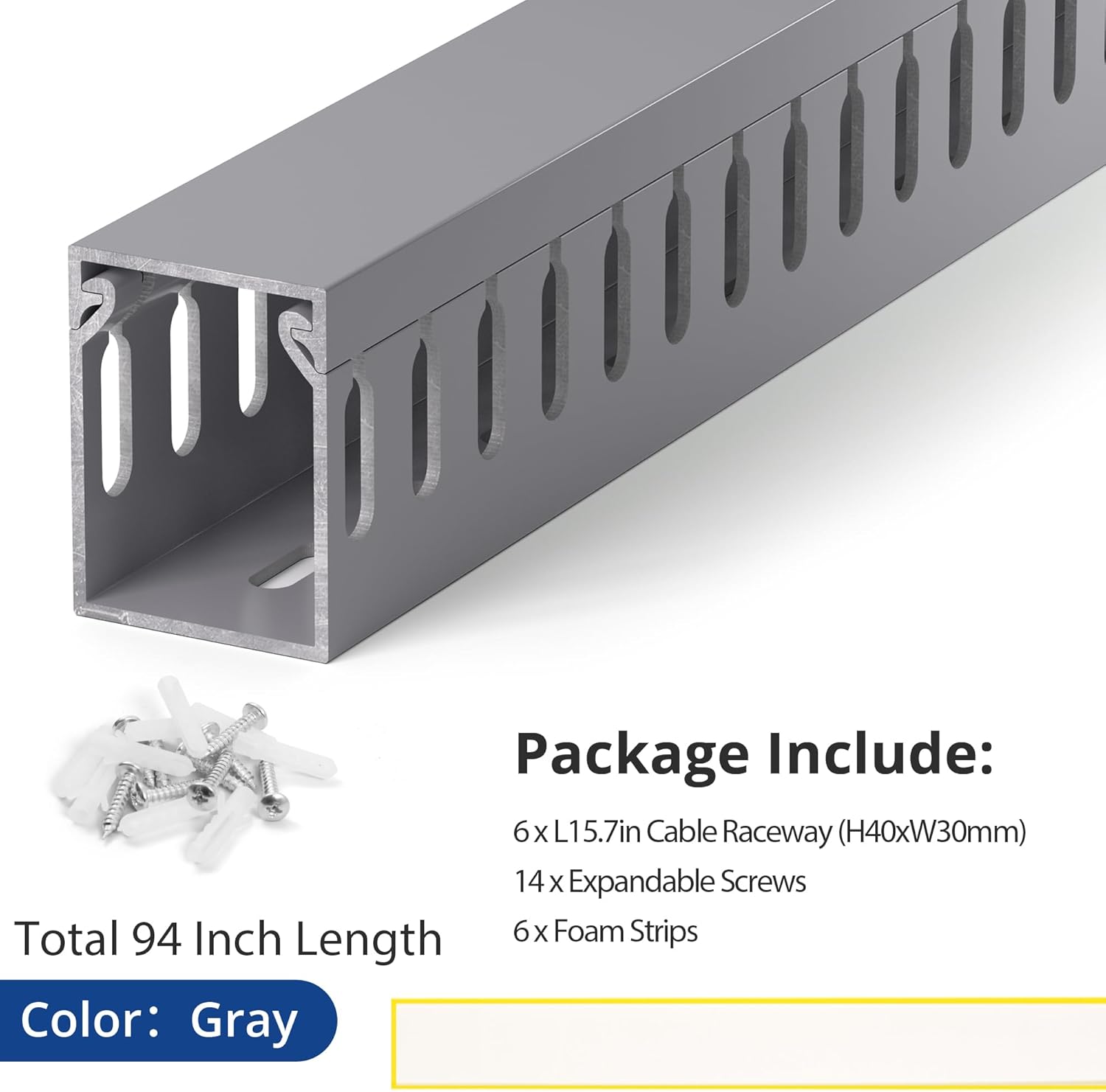 - Simple Installation: Equipped with screws and foam strips for installation, meet all your cable management needs; For your convenience, the bottom of the cord raceway is evenly provided with mounting holes. You can also spray paint it to suit your installation environment or personal preference