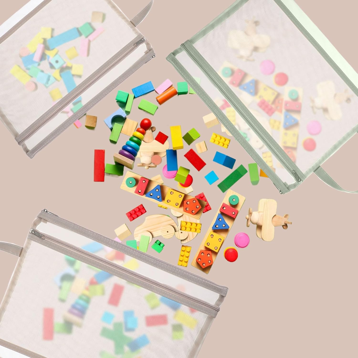 - Neat and Organized: The Breathable Mesh zipper pouch bags with double-layer transparent mesh pockets, one layer can hold instruction books, and the other can store toy pieces. Each set of toys has its own dedicated bag. Toy storage bags help maintain a clean and organized home, reducing the feeling of chaos. This is particularly important for households with children, as it allows for quick and orderly storage of toys, avoiding clutter in hallways and rooms.