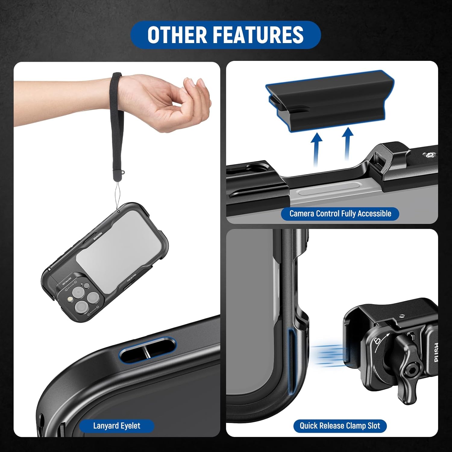 - 【Compatible with iPhone 16 Pro】 This video rig phone stabilizer kit is perfect for video recording, YouTube/TikTok vlogging, live streaming, mobile photography, and filmmaking. The phone cage features slots for PA045 Quick Release Clamp On Side Handle (sold separately), a hollow back compatible with MagSafe wireless charging, and a detachable rubber that keeps the Camera Control fully accessible