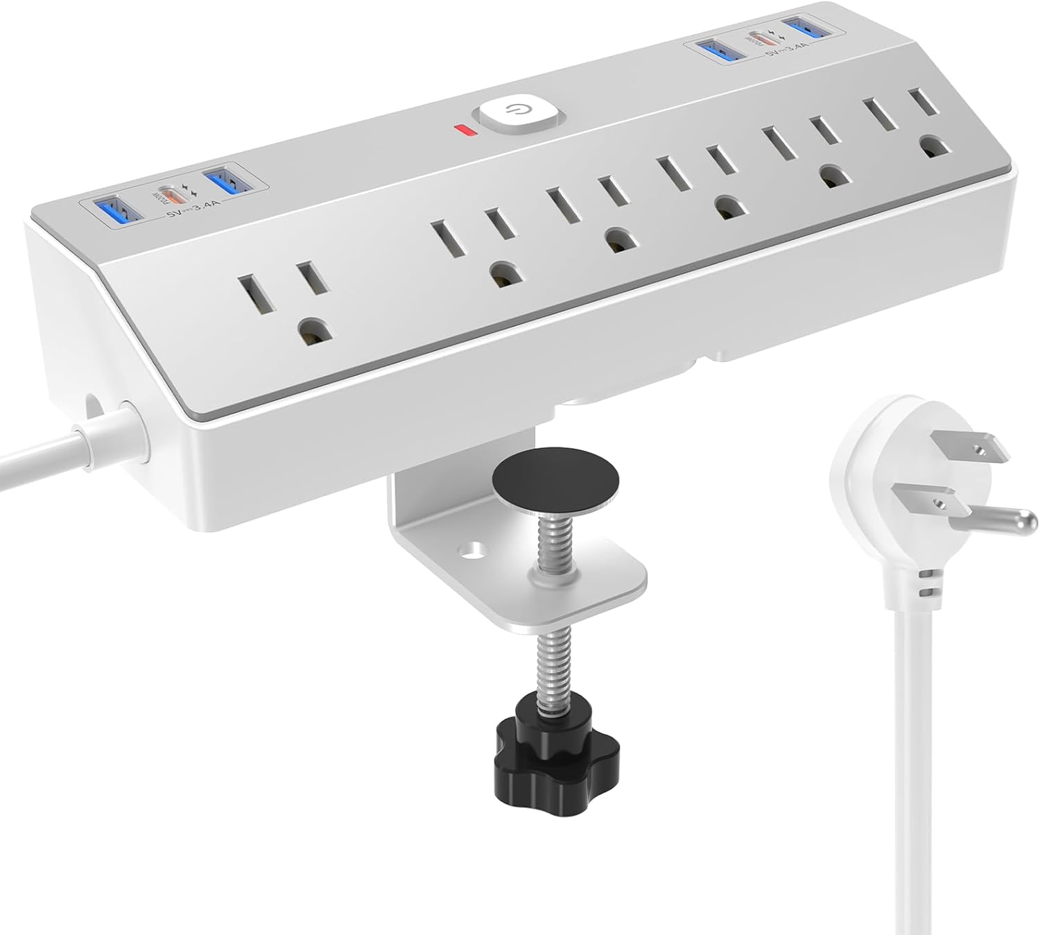 - 【12-in-1 Desk Clamp Power Strip】-This Multi Outlet Plug desk power strip surge protector combines 6 AC Outlets (1625W 13A) and 6 USB Ports (4 USB-A, 2 USB C 20W) in a power station to provides power and charging for up to 12 electric devices from this single unit, easily relieve your electricity troubles.