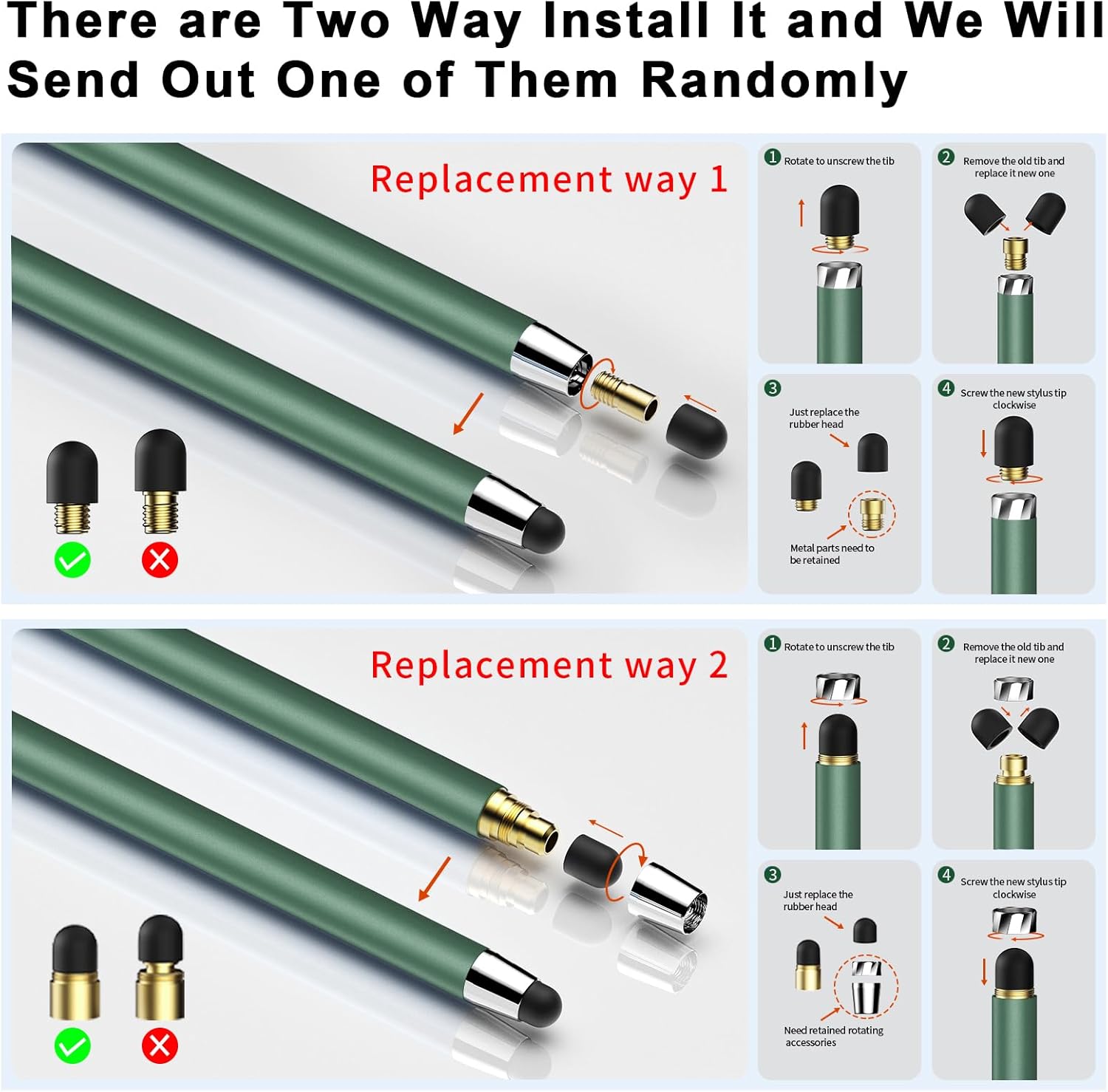 - 【Stylus Pen Set】You will get 5 stylus pens of different colors and 5 0.27-inch, 5 0.21-inch replaceable rubber pen tips in one package. If you have any questions about the stylus pen for touchscreen, please feel free to contact our customer service team, We will solve it for you as soon as possible.