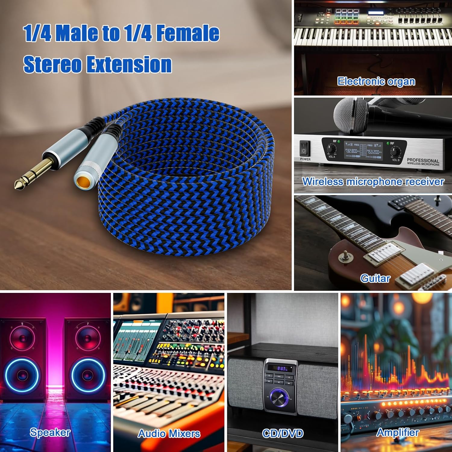 - Cable Type : 6.35mm TRS Male to Female Extension Cable