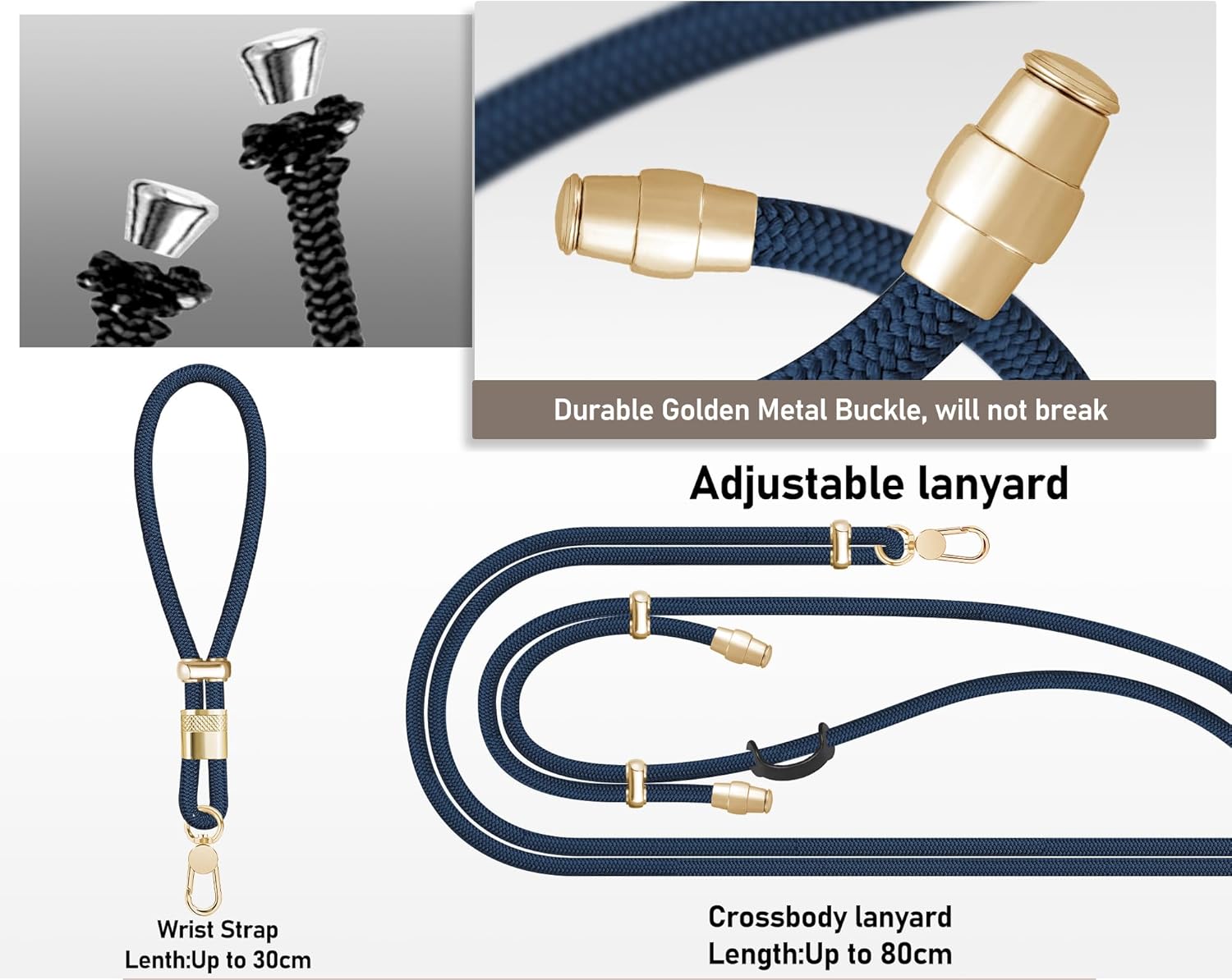 - Premium Metal Buckle: All the metal buckles on this phone lanyard are custom made by us and they are premium, durable,heavy duty and fade-resistant alloy material. Two adjustable metal buckles can be adjusted on both sides to increase the area of force and reduce shoulder pressure, once it is adjusted, it will not move easily and does not need to be adjusted frequently.The metal buckle on the end of the phone lanyard makes the strap look more deluxe.
