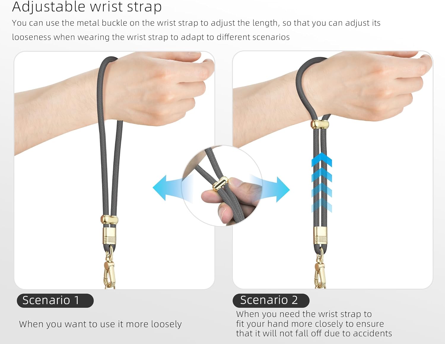 - Premium Metal Buckle: All the metal buckles on this phone lanyard are custom made by us and they are premium, durable,heavy duty and fade-resistant alloy material. Two adjustable metal buckles can be adjusted on both sides to increase the area of force and reduce shoulder pressure, once it is adjusted, it will not move easily and does not need to be adjusted frequently.The metal buckle on the end of the phone lanyard makes the strap look more deluxe.