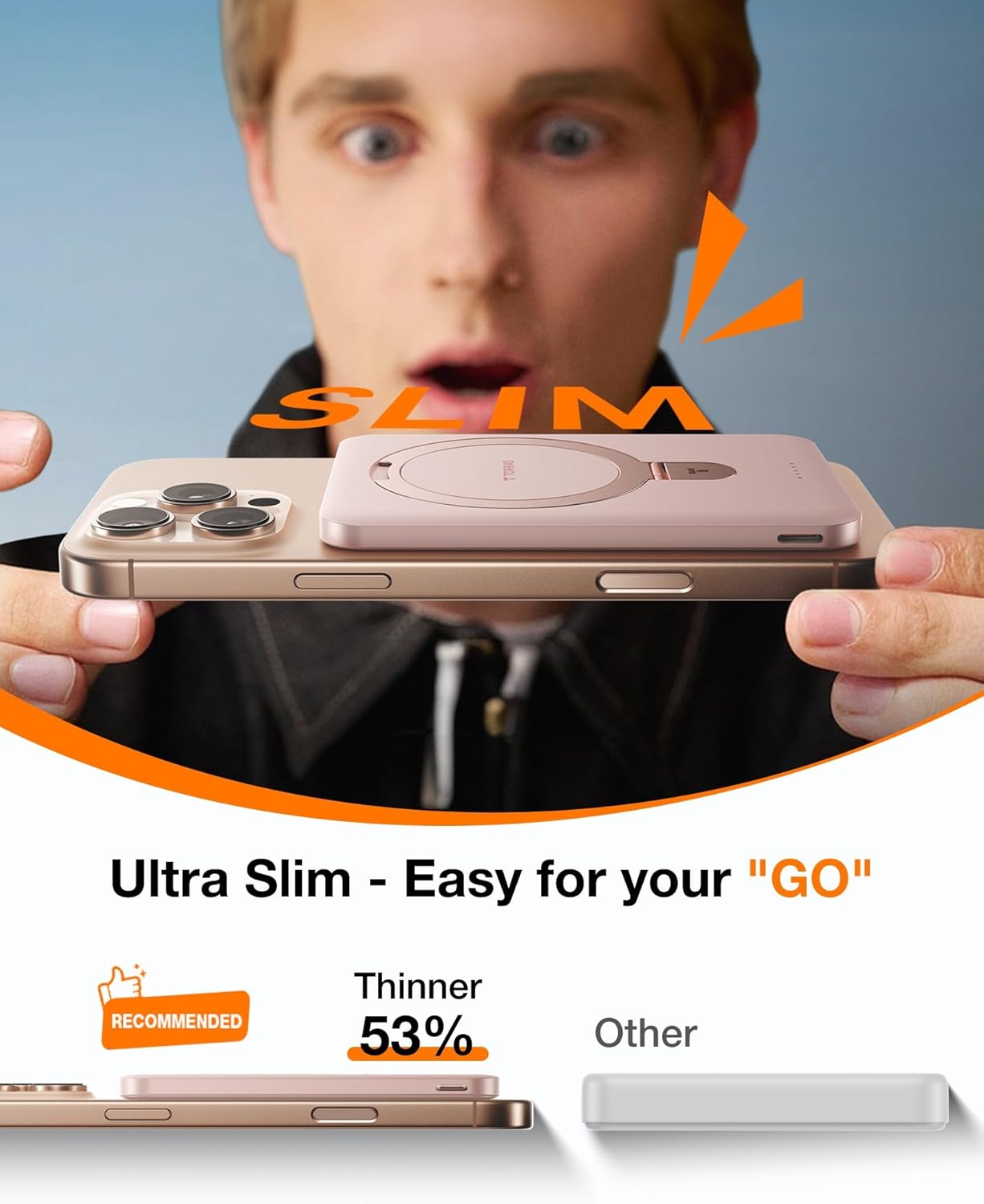 TORRAS 0.45" Slim Magnetic Portable Charger Power Bank for iPhone 5000 mAh 22.5W PD Fast Charging Wireless Battery Pack O Stand Compatible with Magsafe, i Phone 16 Pro Max, Pro,15,14,13,12, Rose Gold