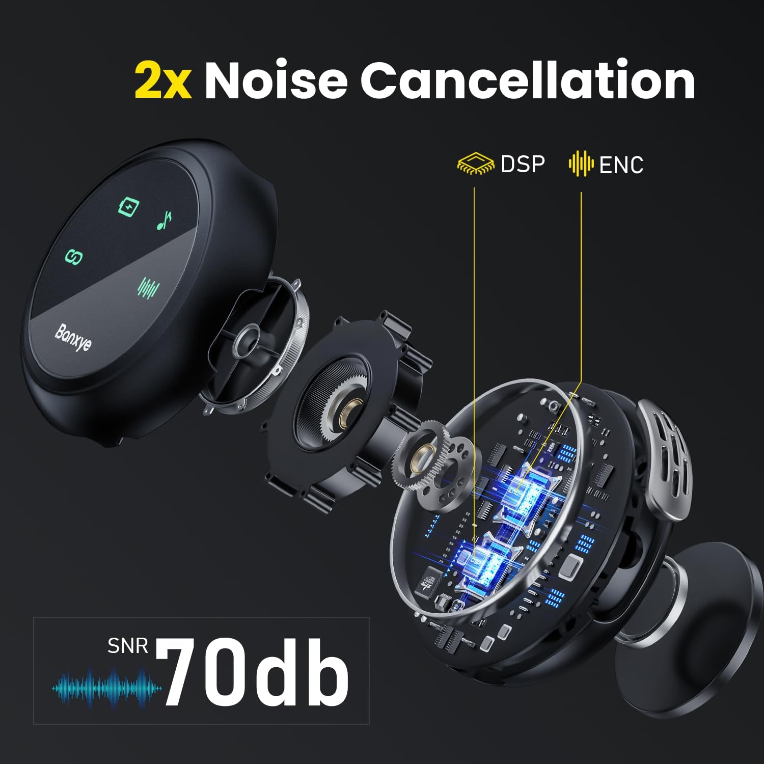 - Material : ①DSP and ENC AI chip Noise-Cancelling; ②Acrylonitrile Butadiene Styrene; ③Metal