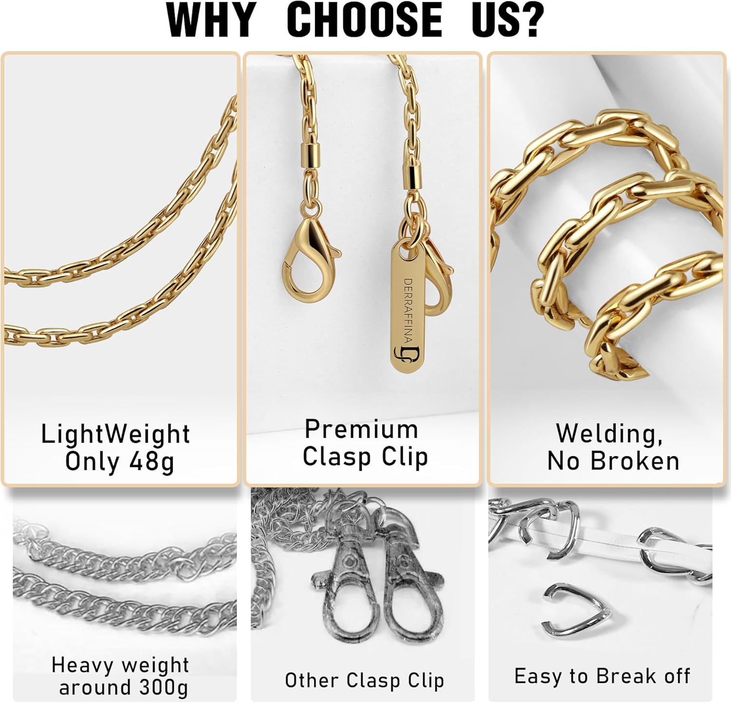 - [Premium Phone Chain Crossbody] Our colorfast, skin-friendly cell phone chain is made of high-quality metal. By adopting monolithic molding technology, the phone strap crossbody is sturdy and offers enhanced functionality. The length and weight of the crossbody phone strap and phone chain wristlet are 49.8 inches/1.72 ounces and 10.62 inches/0.49 ounces, respectively. You can get both in one pack
