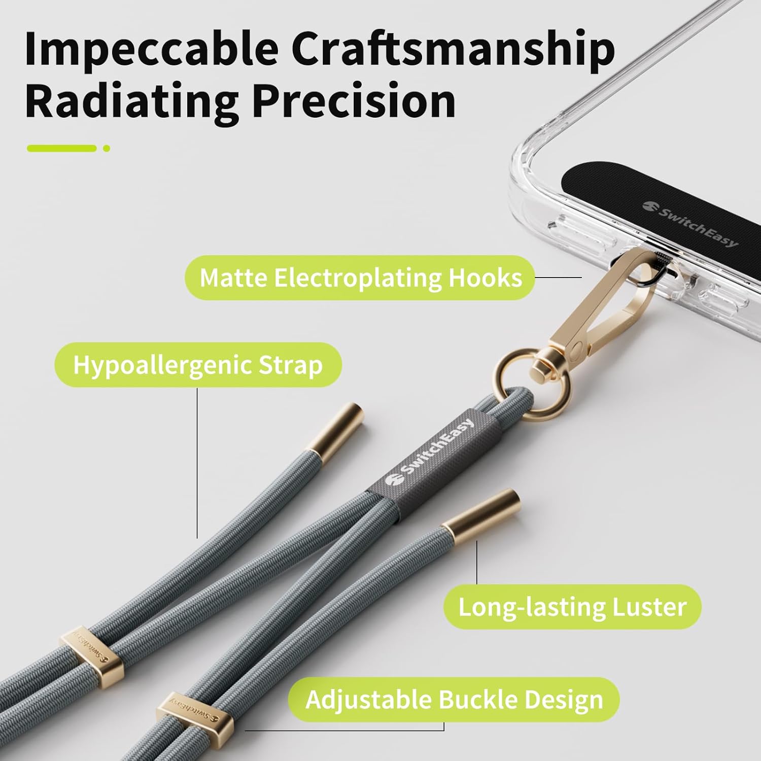 SwitchEasy 6mm Adjustable Crossbody Phone Strap Compatible with Most Phones, Anti-Theft & Ant-Drop, Hands Free for Phone Lanyard Crossbody with Strap Card Phone Tether Tab-EasyStrap (Noctilucent Blue)