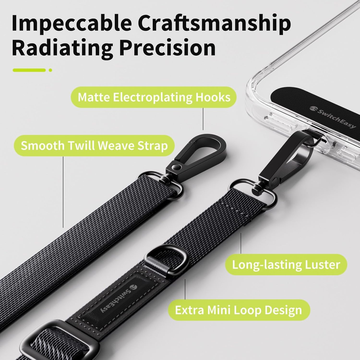 SWITCHEASY 20mm Adjustable Crossbody Phone Strap Compatible with Most Phones, Anti-Theft & Ant-Drop, Hands Free for Phone Lanyard Crossbody with Strap Card Phone Tether Tab - EasyStrap (Dark Black)