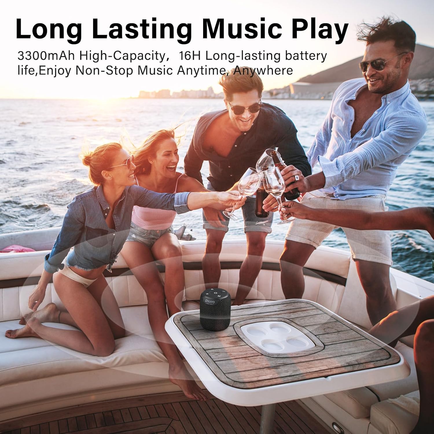 - [Bluetooth V5.3] The Bluetooth speaker features the latest Bluetooth 5.3 chip, ensuring quick pairing and a stable connection. The built-in microphone allows for high-quality, hands-free calls, and the speaker automatically reconnects to the last device used for added convenience.