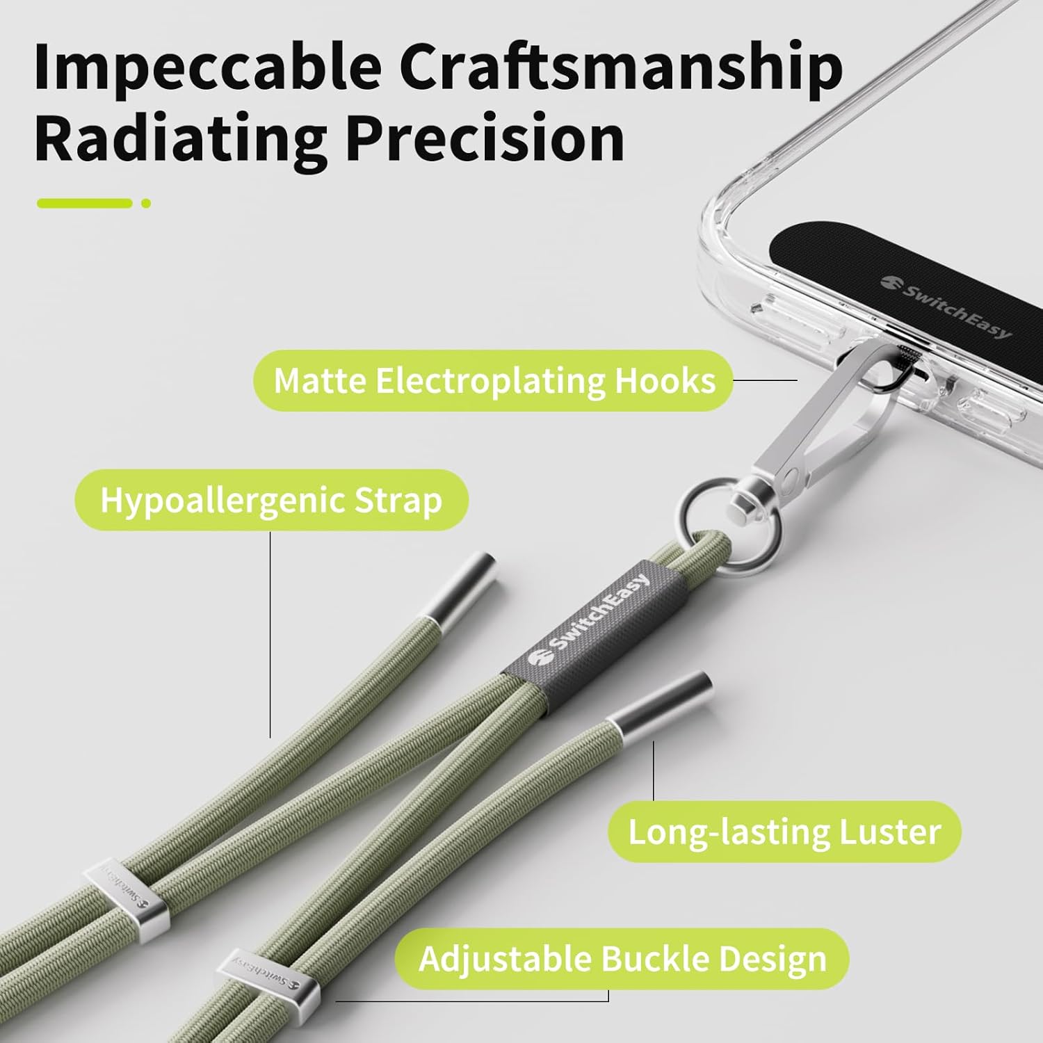 SWITCHEASY 6mm Adjustable Crossbody Phone Strap Compatible with Most Phones, Anti-Theft & Ant-Drop, Hands Free for Phone Lanyard Crossbody with Strap Card Phone Tether Tab - EasyStrap (Sea Foam)