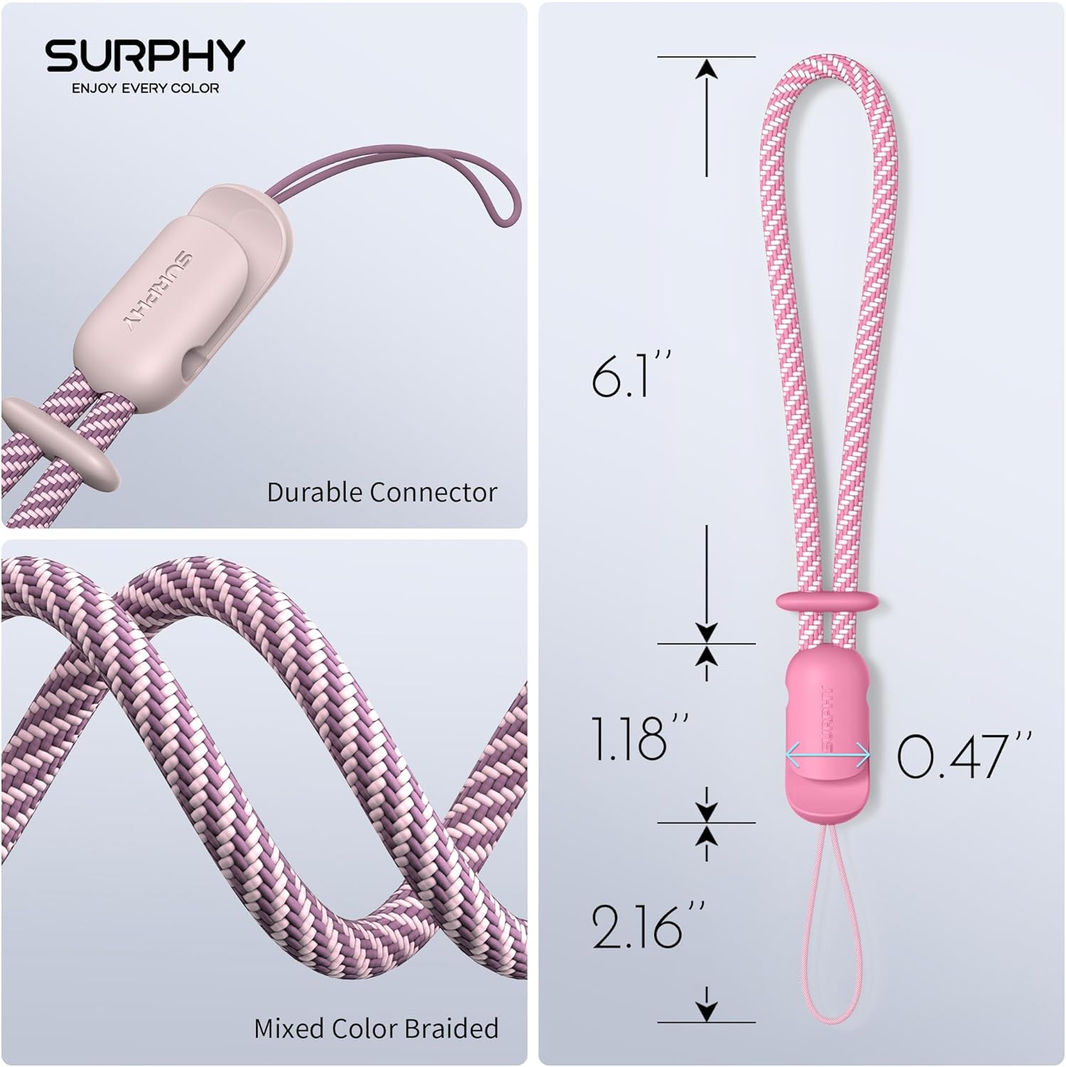 SURPHY 2 Pack Phone Lanyard for Cellphone Case, Phone Wrist Strap for Case, Cellphone Strap with 2-Color Braided, Charm Wrist Lanyard for Women and Men, Pink & Rose Pink