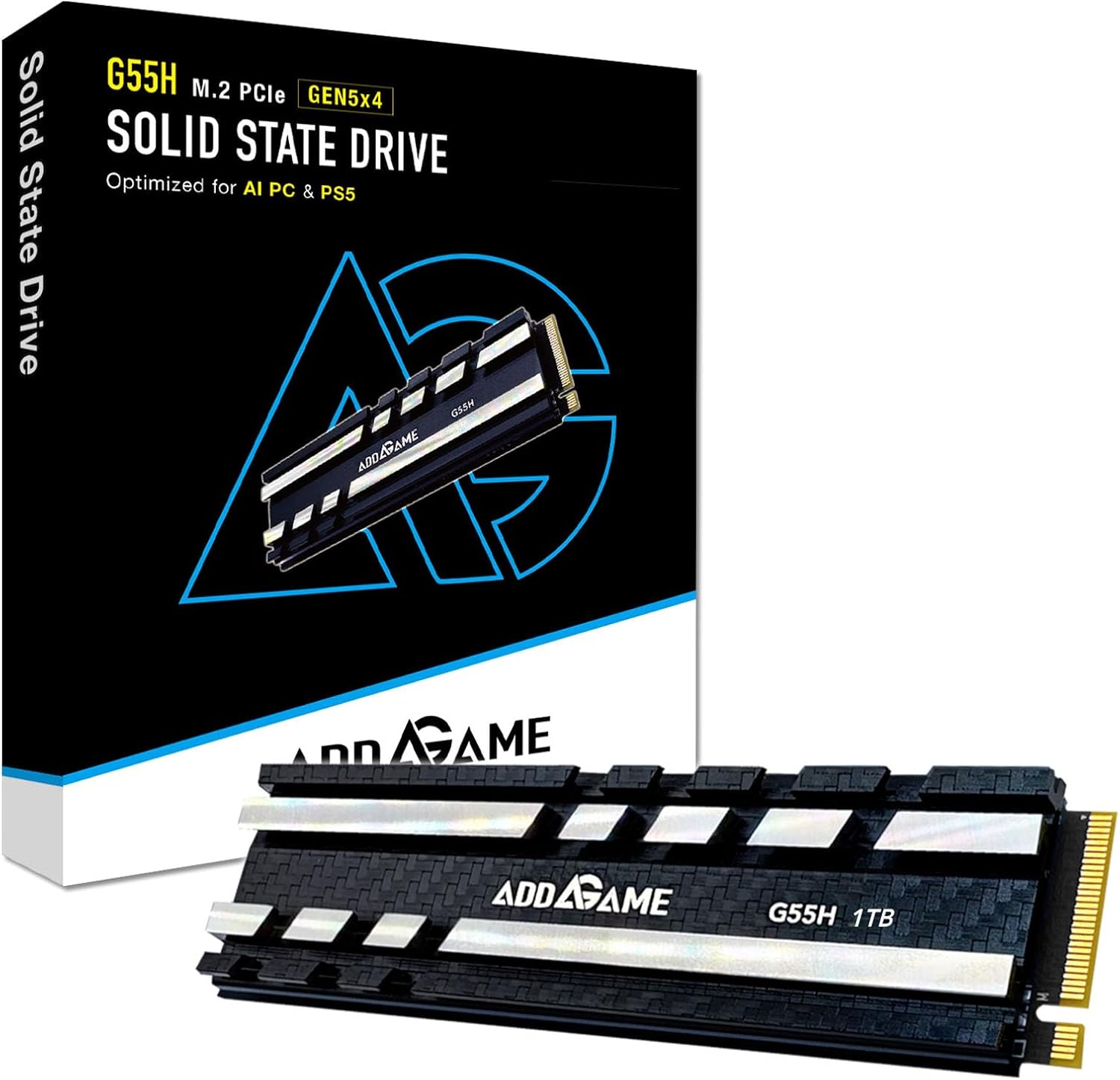 Addlink G55H 1TB PCIe 5.0 Gen5 NVMe M.2 SSD with Heatsink - Up to 10,200 MB/s - Game Ready - Internal Solid State Drive - Compatible with PCs and PS5 (ad1TBG55HM2P)