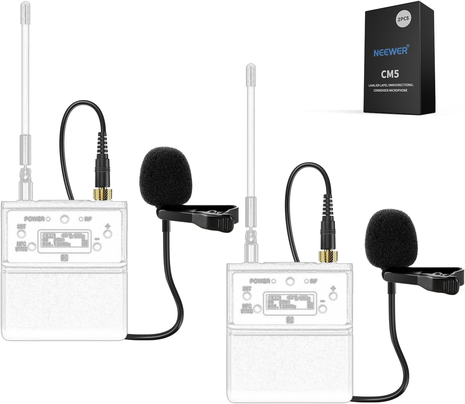 NEEWER Lapel Lavalier Microphone (2 Pack), Wired Clip On Omnidirectional Condenser Lav Mic Compatible with Rode Wireless GO II DJI Wireless Mic Transmitter for Stage YouTube Video Live Stream, CM5