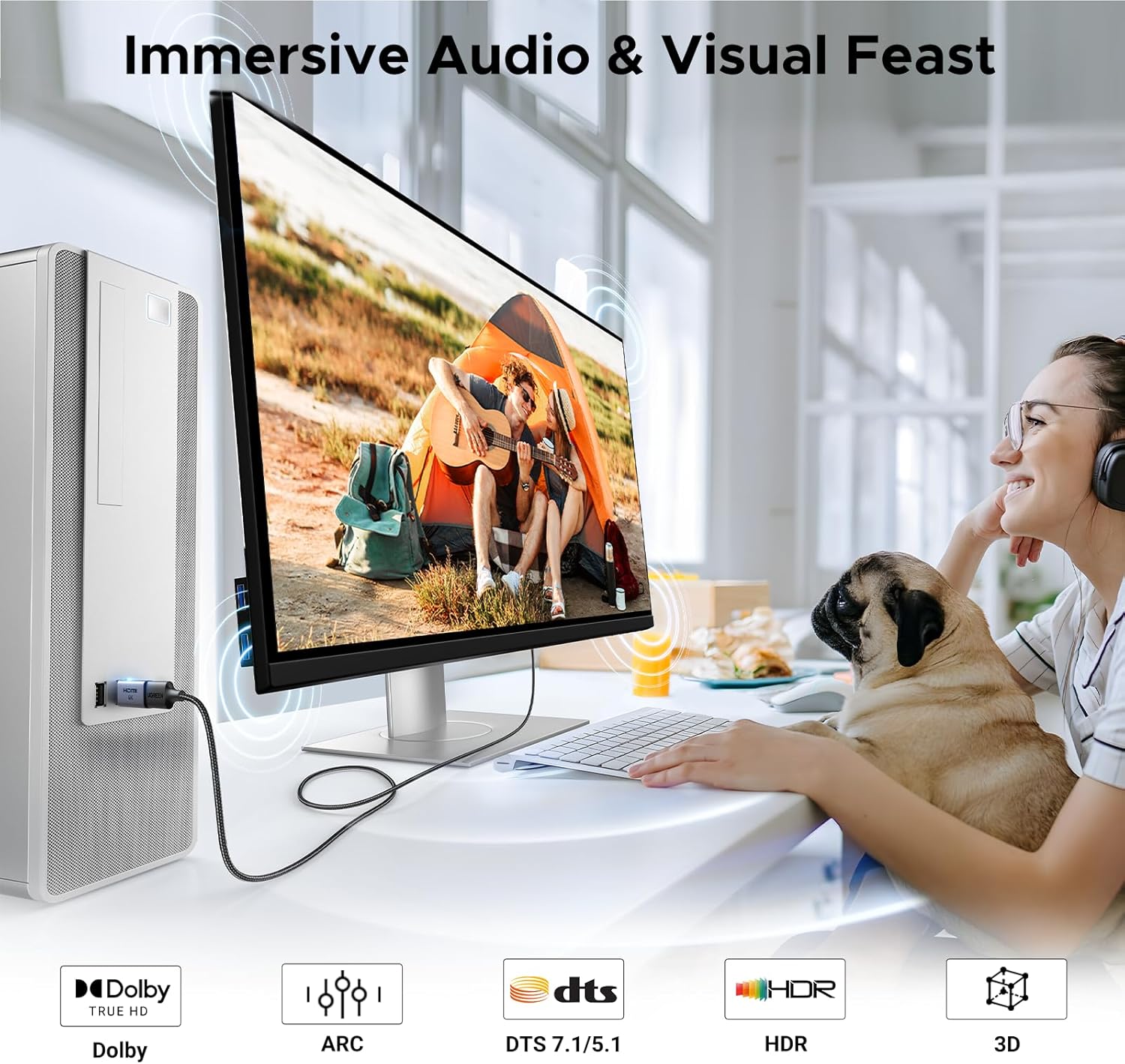 - Universal Compatibility: Compatible with DP-enabled laptop, desktop, graphics card (AMD, NVIDIA). Connect to an HDMI-enabled TV, projector, monitor, VR headset, or others for video and audio transfer. Not compatible with HDMI source devices such as MacBook, PS, Switch, and Xbox.
