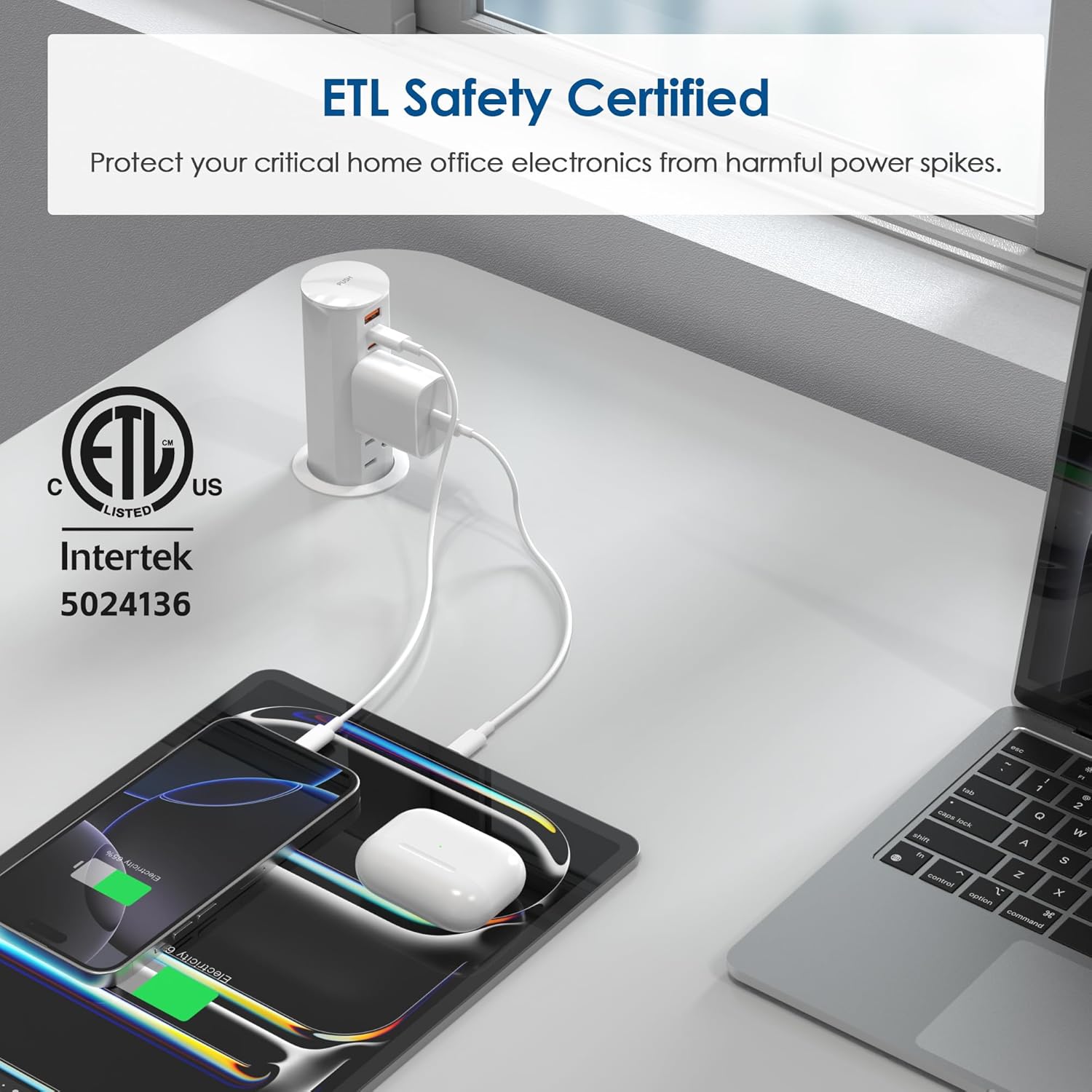 - Countertop Pop-Up Sockets: Elegantly hide power within granite or desks. This round-shaped 2-inch hole power grommet is not only child-safe with Tamper Resistant (TR) sockets but also offers a 12 Amp-rated receptacle for power appliances.Essential for desks and standing desks in offices and studies.