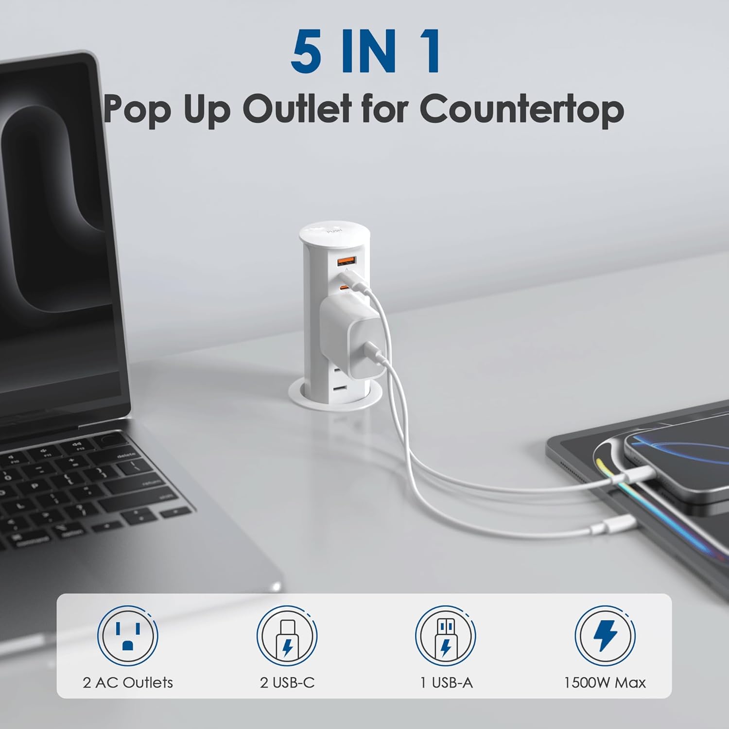 - Water-Resistant and Durable: Crafted with refined hardened scratch-resistant PVC plastic, this splash-resistant pop-up countertop receptacle is built to last. Accidental spills can be easily wiped away, allowing the outlet to continue functioning normally. It’s the perfect blend of durability and convenience for any kitchen countertop or office space.