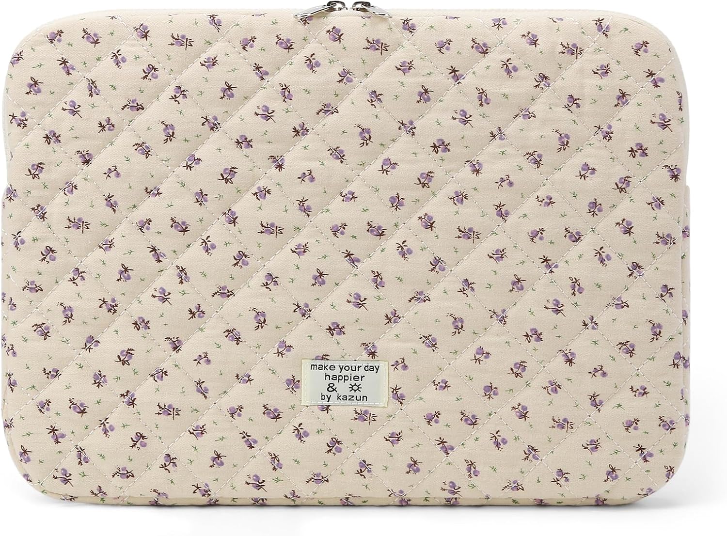 Puffy Laptop Sleeve 13-15.6 Inch Cute Quilted Laptop Protective Case Padded Floral Computer Sleeve for MacBook (A-Purple, 13 Inch)