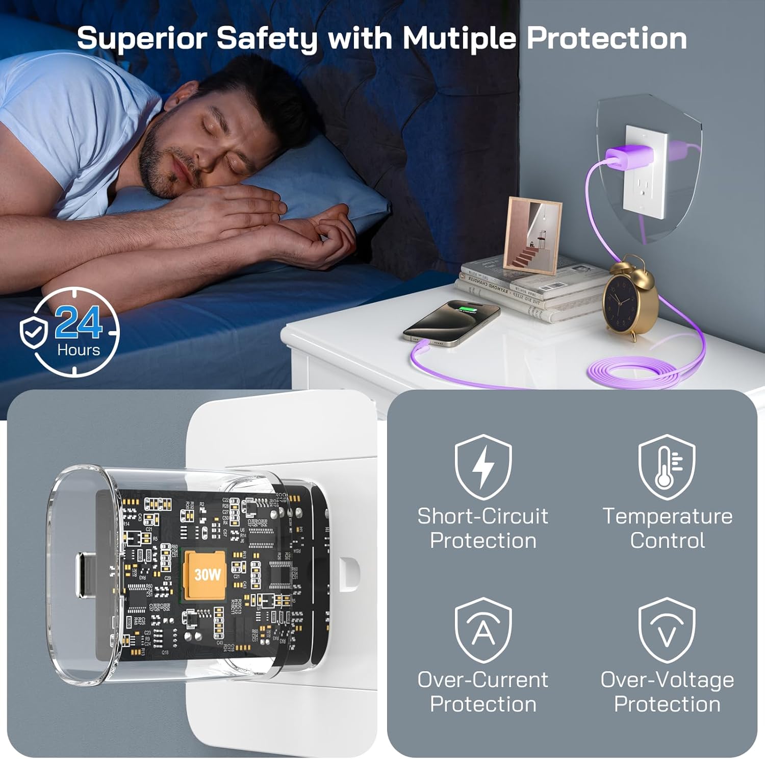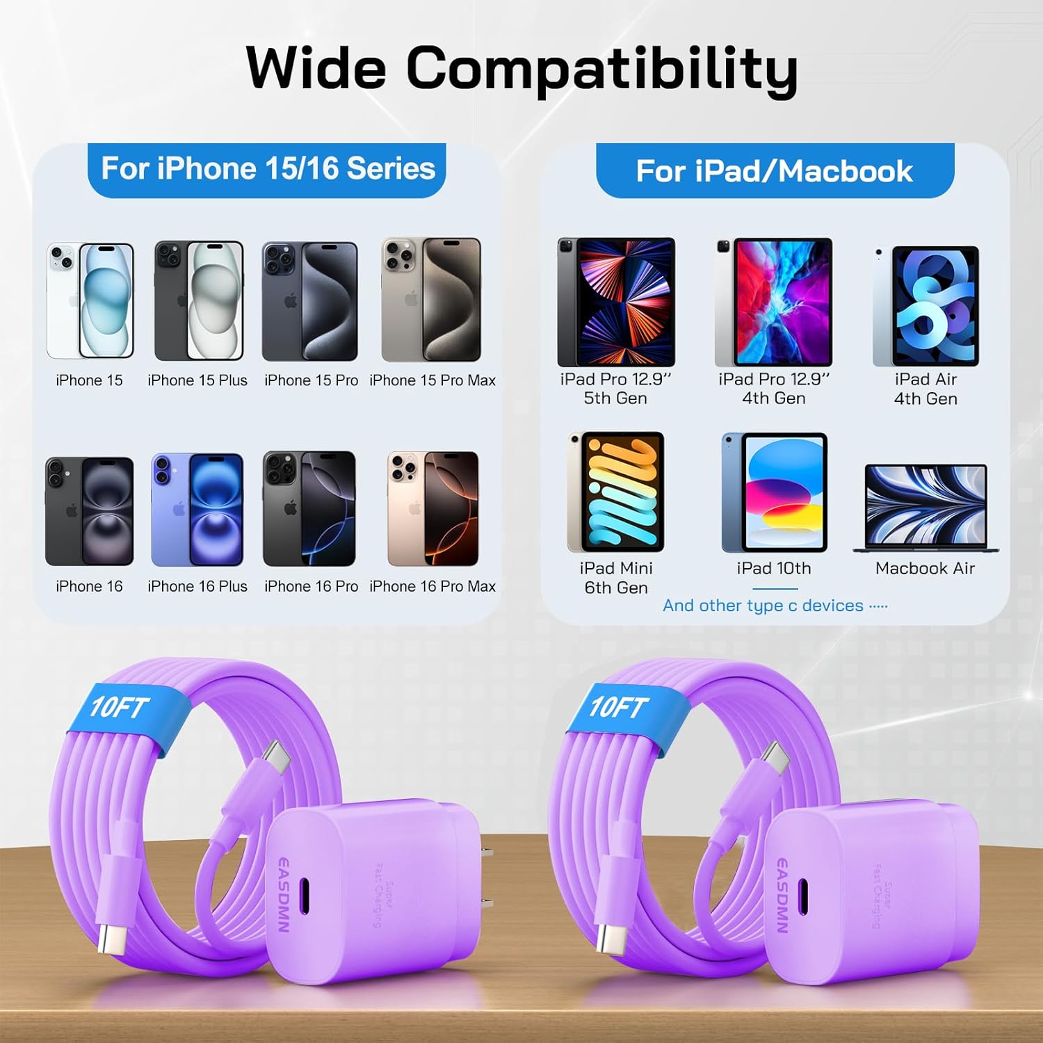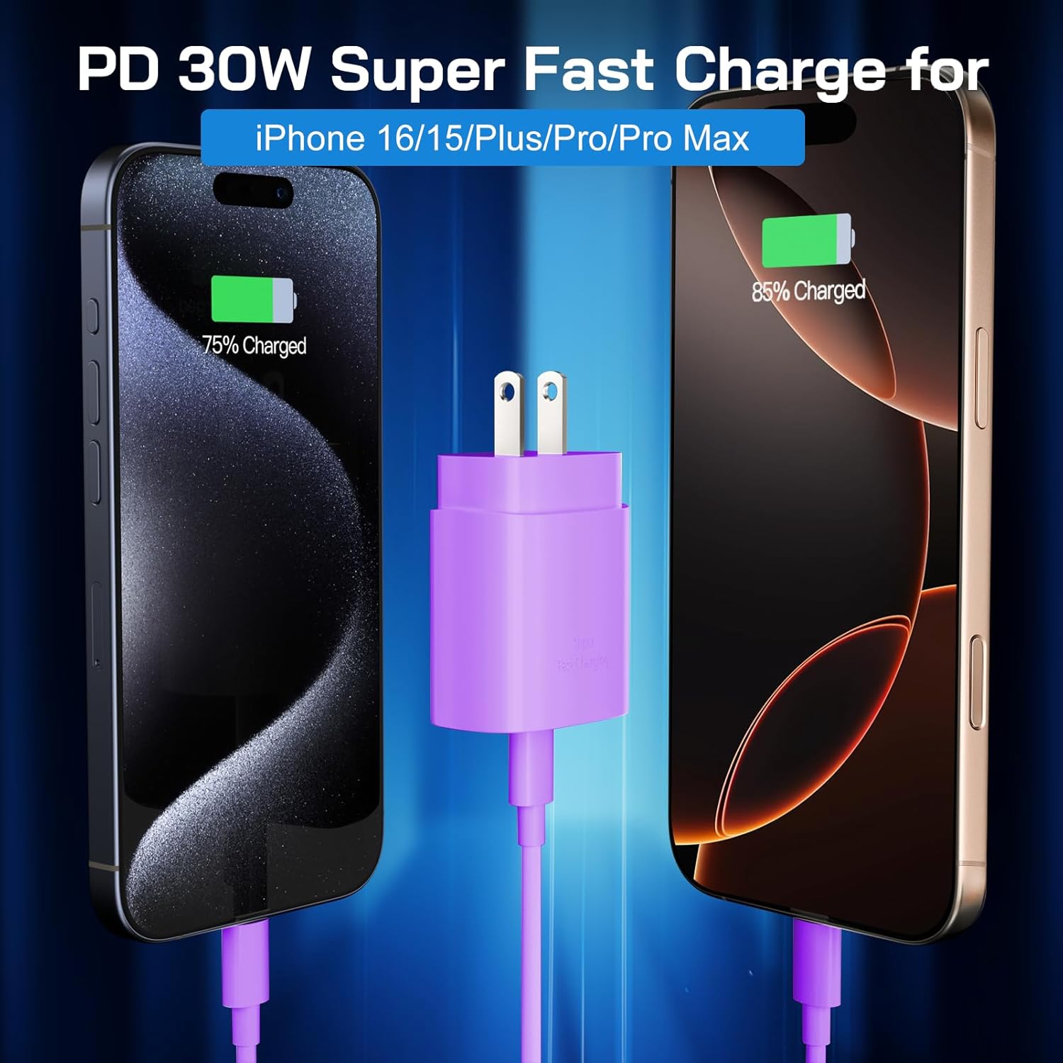 - 【Package List & Customer Support】Package included purple i Phone 15 charger block X2, 10FT long i Phone 15 charger cord X2 and Welcome Guide X1. If you encounter any issues with the product during use under 12-months, simply let us know and we can make things right for you. Additionally, we provide 24/7 customer support to assist you with any questions or concerns you may have.