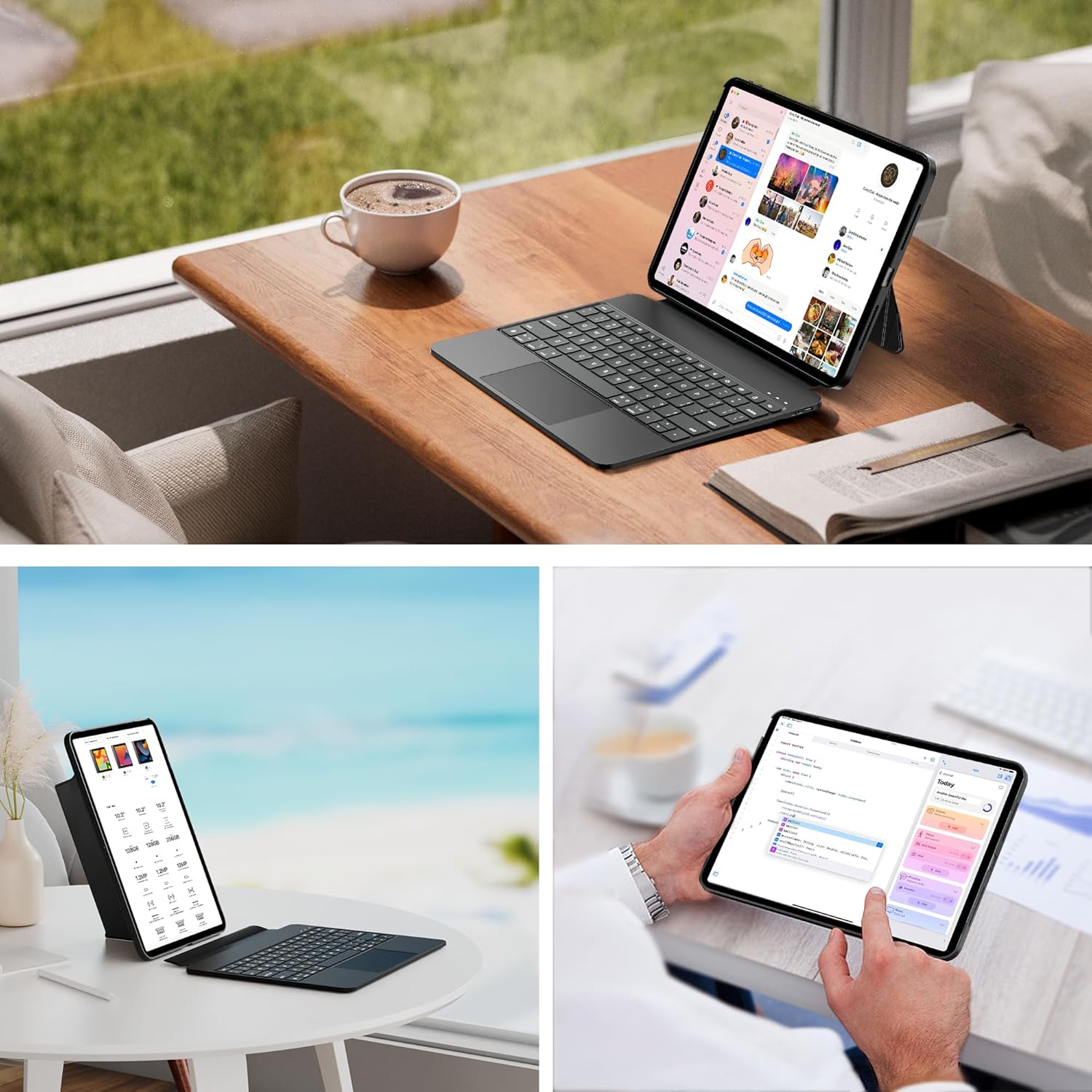 - 【Adjustable Versatility】: The ultra-flexible kickstand supports stand, tablet, and laptop modes, detach the keyboard for versatile use cases. The sturdy cover provides all-around protection for your iPad everywhere.