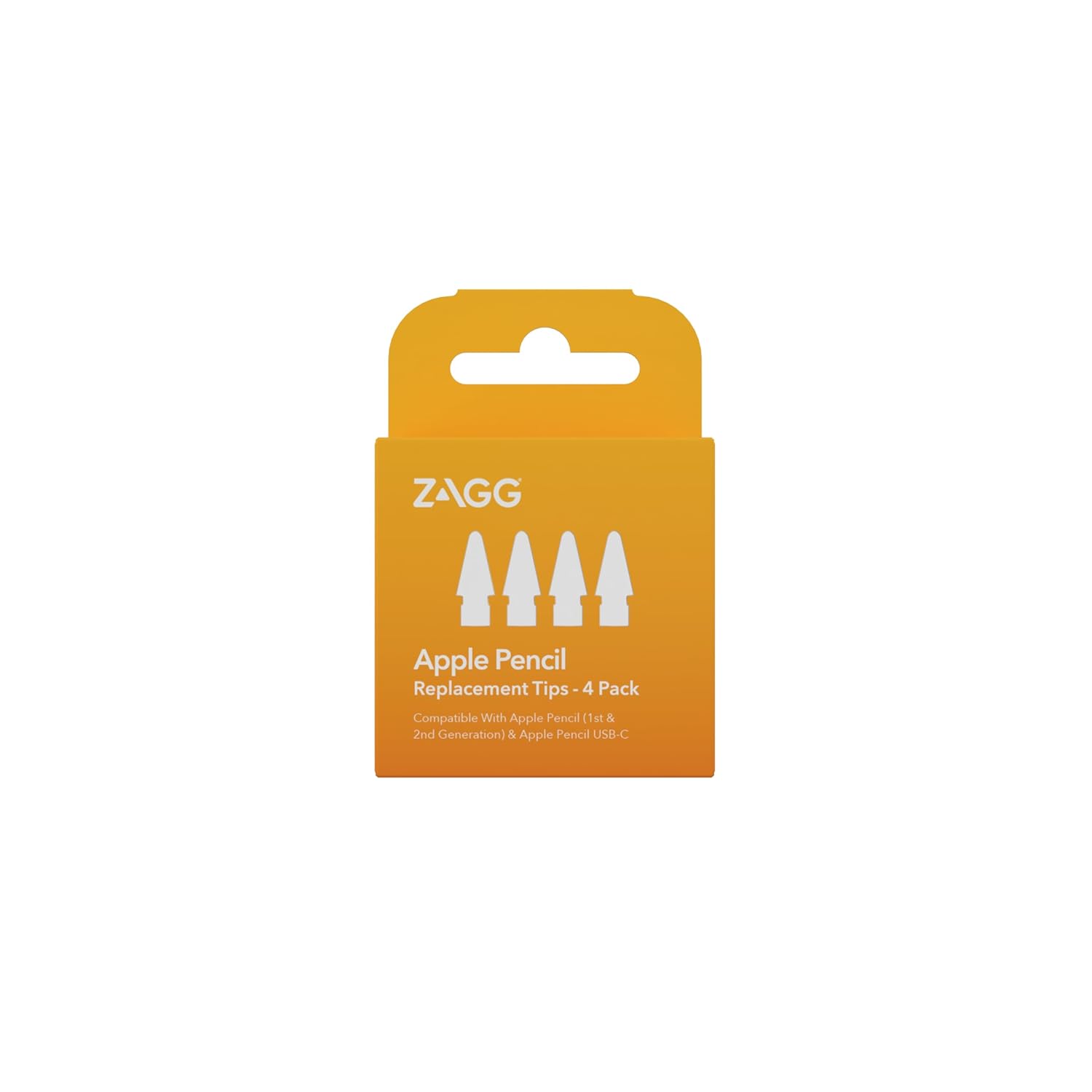 ZAGG Replacement Tips for Apple Pencil 1st Gen, 2nd Gen, & USB-C - Pack of 4, Smooth Writing, Perfect Friction, White