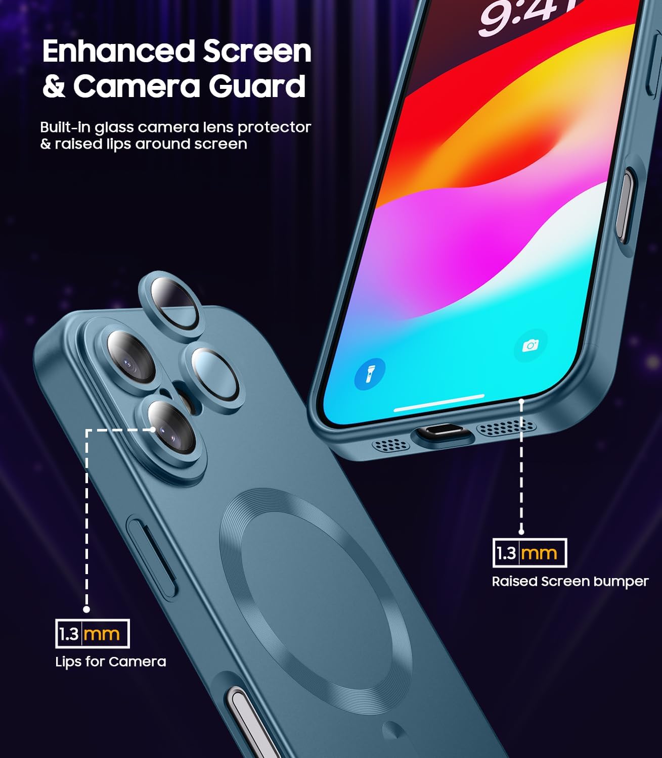 - 【Complete Camera Protection】The built-in camera lens cover ensures full protection for your iPhone 16 Plus camera, while the raised screen lips (1.5mm) safeguard the device from scratches when placed face down