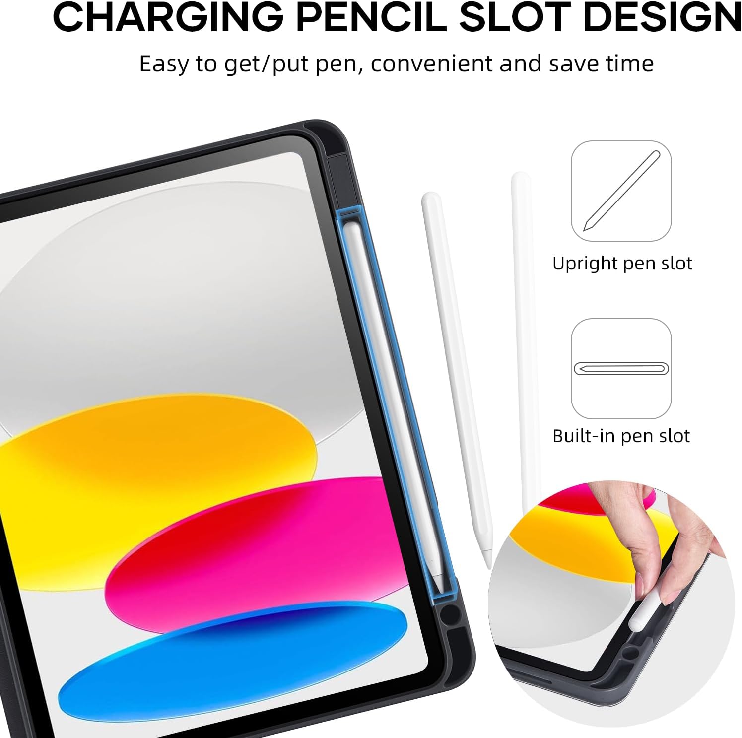 - BUILT-IN PENCIL HOLDER & MULTIPLE VIEWING ANGLES----Our keyboard case comes with a slot for holding your Apple pencil stylus that lets you effortlessly reach for your pen whenever you want to use the touch pen function (not including ipad pencil, pen cap and adapter). Internal non-slip design for propping up the tablet into different viewing angles in landscape mode.Perfect for working, writing, or watching videos.