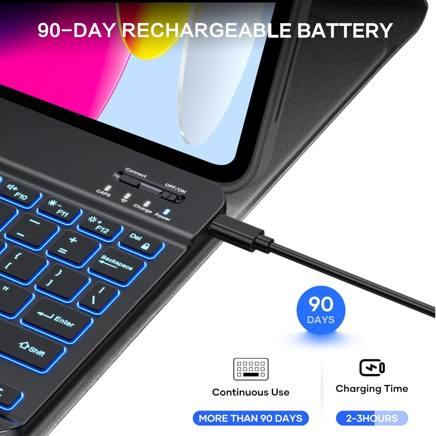 - MAGNETICALLY REMOVABLE KEYBOARD----The magnetic ipad 11th (A16) 11-inch 2025,iPad 10th 10.9 inch 2022 keyboard and case are separated, magnetically attached, the keyboard can be removed from the case if not needed. Bluetooth connectivity is easy to operate. A spring mechanism underneath each key ensures a tactile response with every stroke, helping you to type faster and with less error than on a touchscreen.Please charge it when keyboard power indicator flashing red.