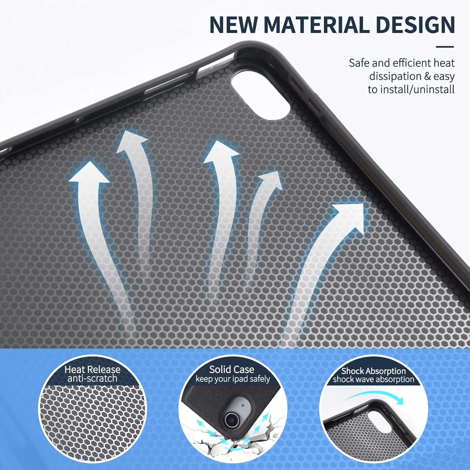 - HEAT RELEASE & IPAD WHOLE BODY PROTECTION----iPad 11th/10th keyboard case comes with honeycomb grid pattern design is better for heat release and anti-skid, and offers 360° full protection against scratches, bumps or dents, protecting your tablet from all sorts of dropping accidents, also against fingerprints, shocks, scratches and dust.