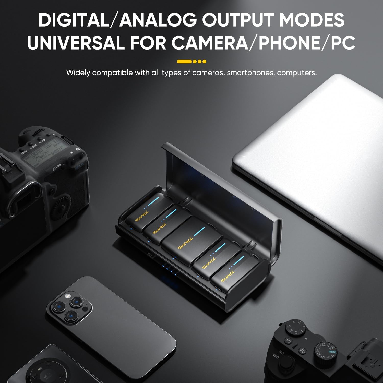 - Included Components : 2-in-1 Charging/Audio Output Cable*1, 3.5mm TRS-TRS Audio Cable*1;3.5mm TRS-TRRS Audio Cable*1, Charging Case*1; Carrying Pouch*1, Transmitter(TX) *4; Receiver(RX)*1, Wind Muff*4; Magnetic Plate *4 2-in-1 Charging/Audio Output Cable*1, 3.5mm TRS-TRS Audio Cable*1;3.5mm TRS-TRRS Audio Cable*1, Charging Case*1; Carrying Pouch*1, Transmitter(TX) *4; Receiver(RX)… See more