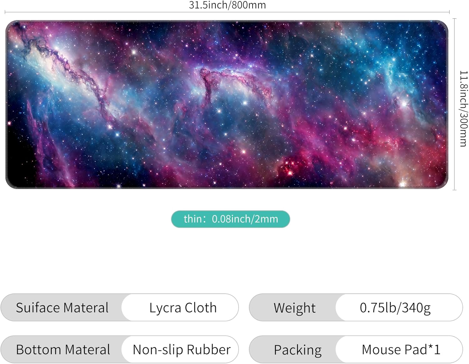 Dynippy Thin Extended Gaming Mouse Pad (31.5 * 11.8 * 0.08 inch) with Stitched Edges Large Mousepad Long XXL Keyboard and Mouse pad Desk Mat for Gaming Office & Home - Galaxy Nebula Space