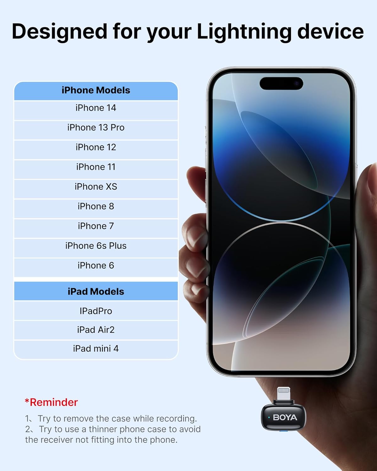 BOYA mini Wireless Microphone for iPhone with MFi Certified Ligntning Interface,Noise Cancellation, 30H Battery Life with Charging Case,AI Voice Changer for Video Recording, Live Streaming, Interviews