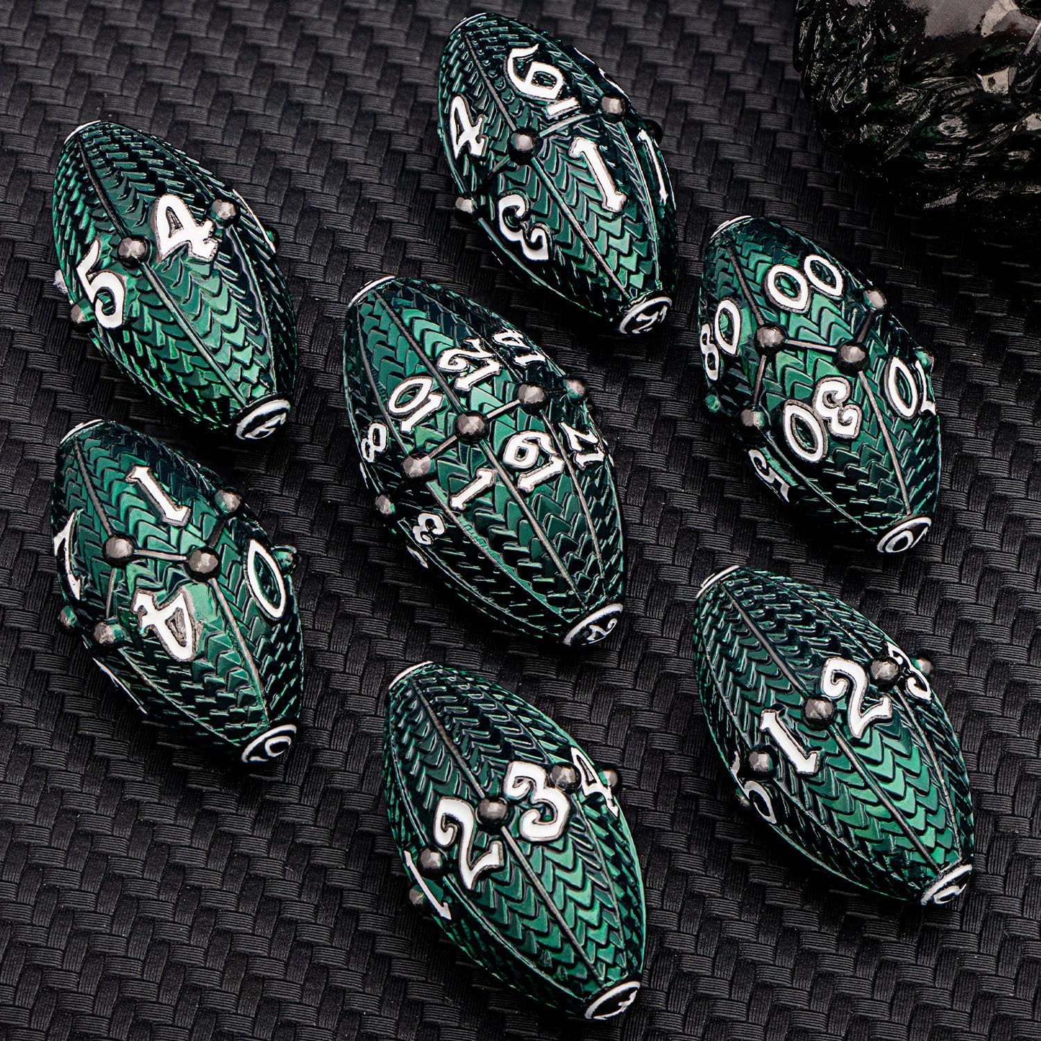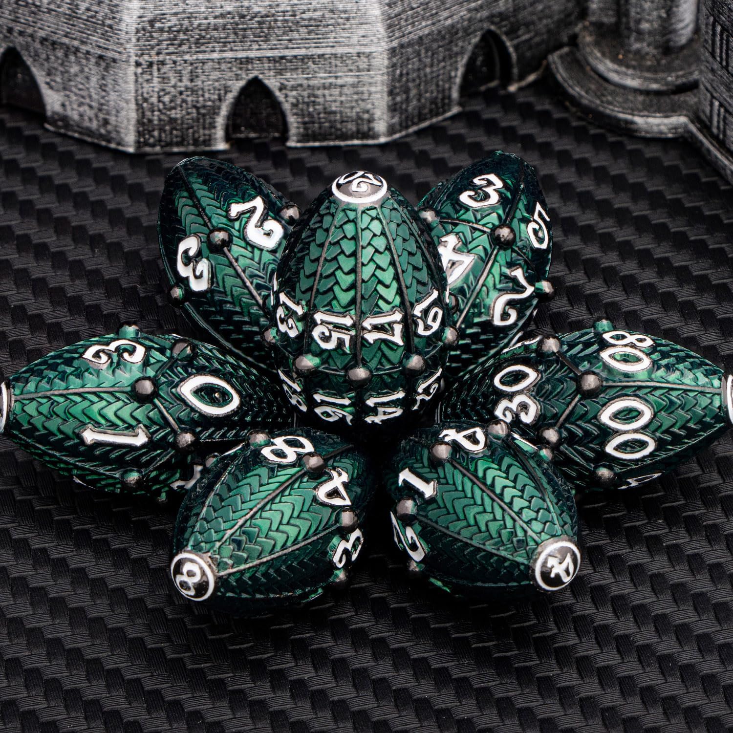 ARUOHHA DND Metal Dice Black Green Dragon Egg Dice with Metal Box, Role Playing Game RPG Polyhedral D and D Dice Set D20 D12 D10 D8 D6 D4