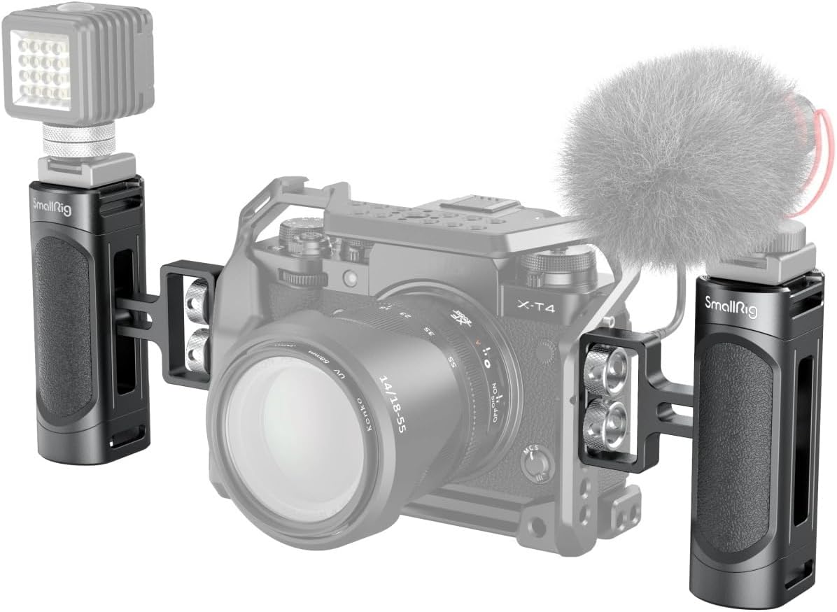 - 【MOUNTING OPTIONS】SmallRig handle 4957 supports additional mounting options - The flash and microphone can be mounted through the cold shoe 1241, and the wrist strap, such as 2456, can be mounted through the eyelet to prevent the camera from accidentally falling off.