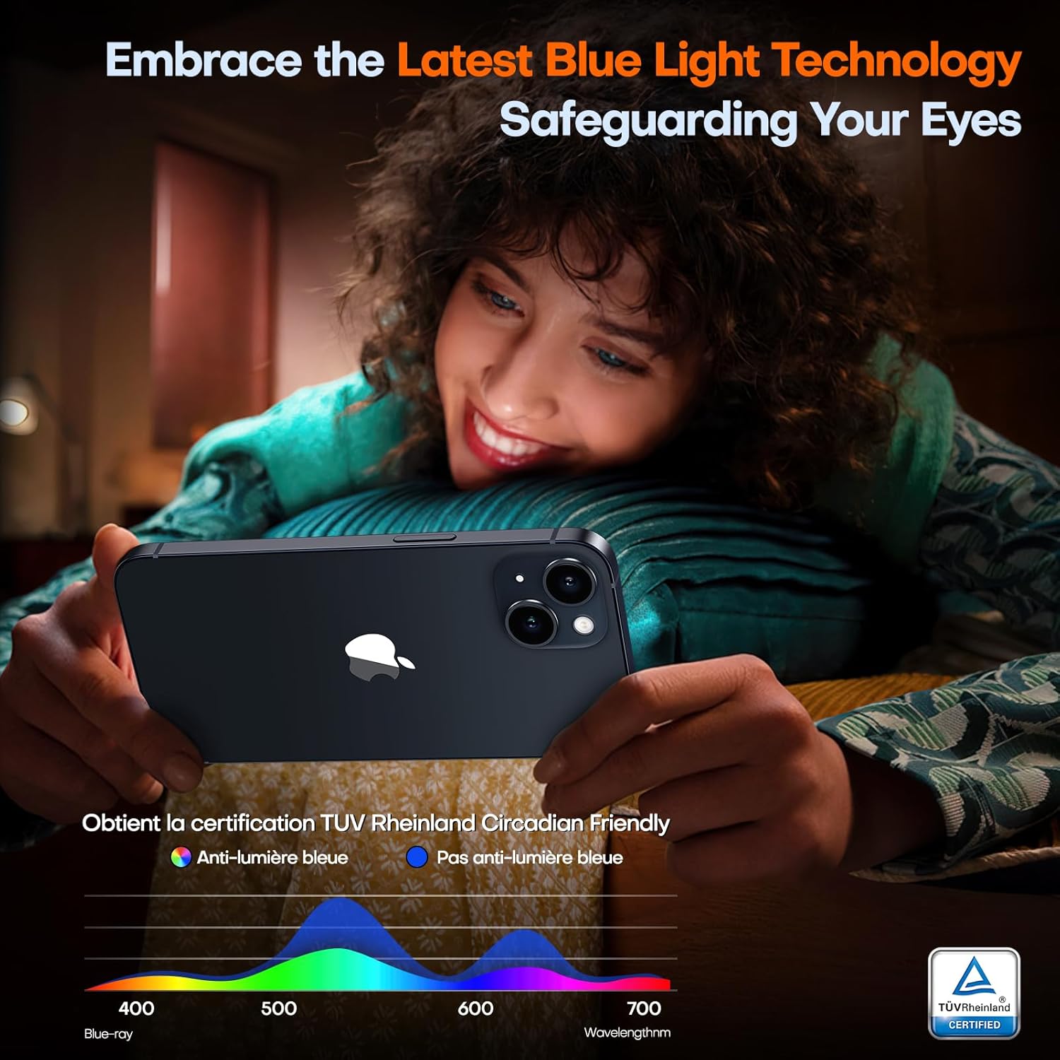 - 【🥇HD Transparent Eye Protection】Made of optical-grade high-transparency material that faithfully reproduces the best visual feast brought by the iPhone screen. Additionally, professional blue light filtering technology is incorporated to create a more relaxed and comfortable viewing experience