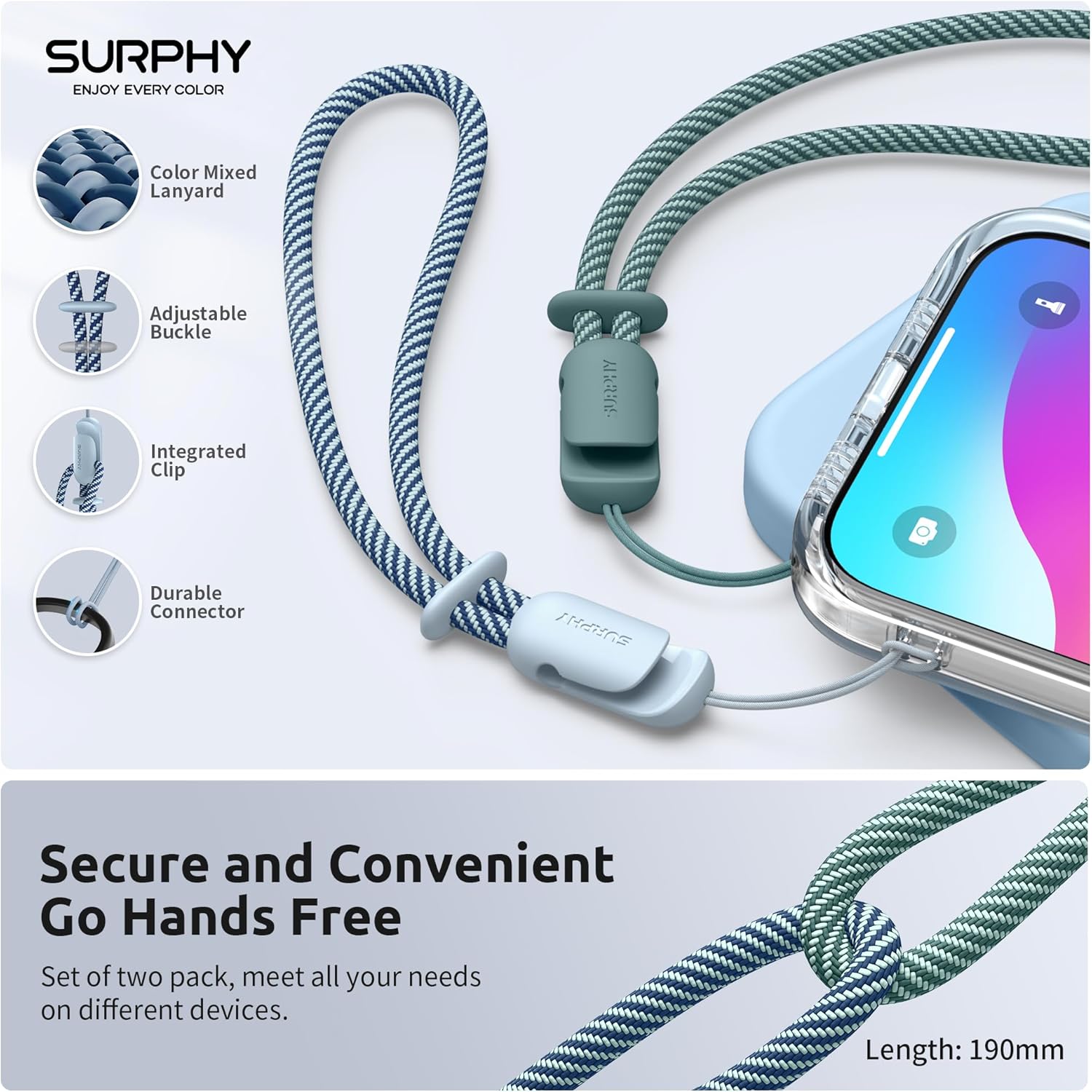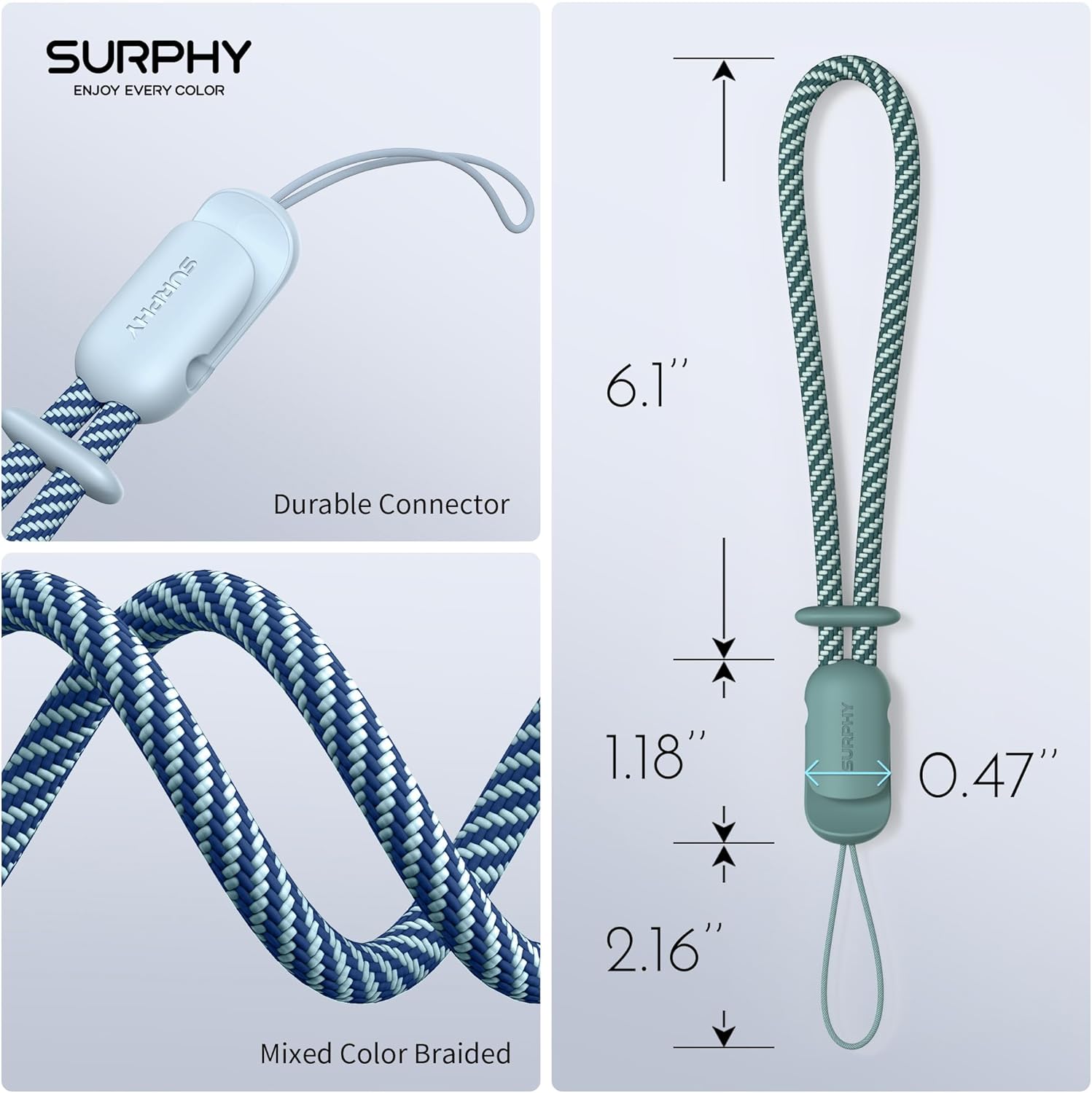 SURPHY 2 Pack Phone Lanyard for Cellphone Case, Phone Wrist Strap for Case, Cellphone Strap with 2-Color Braided, Charm Wrist Lanyard for Women and Men, Cloud Blue & Green