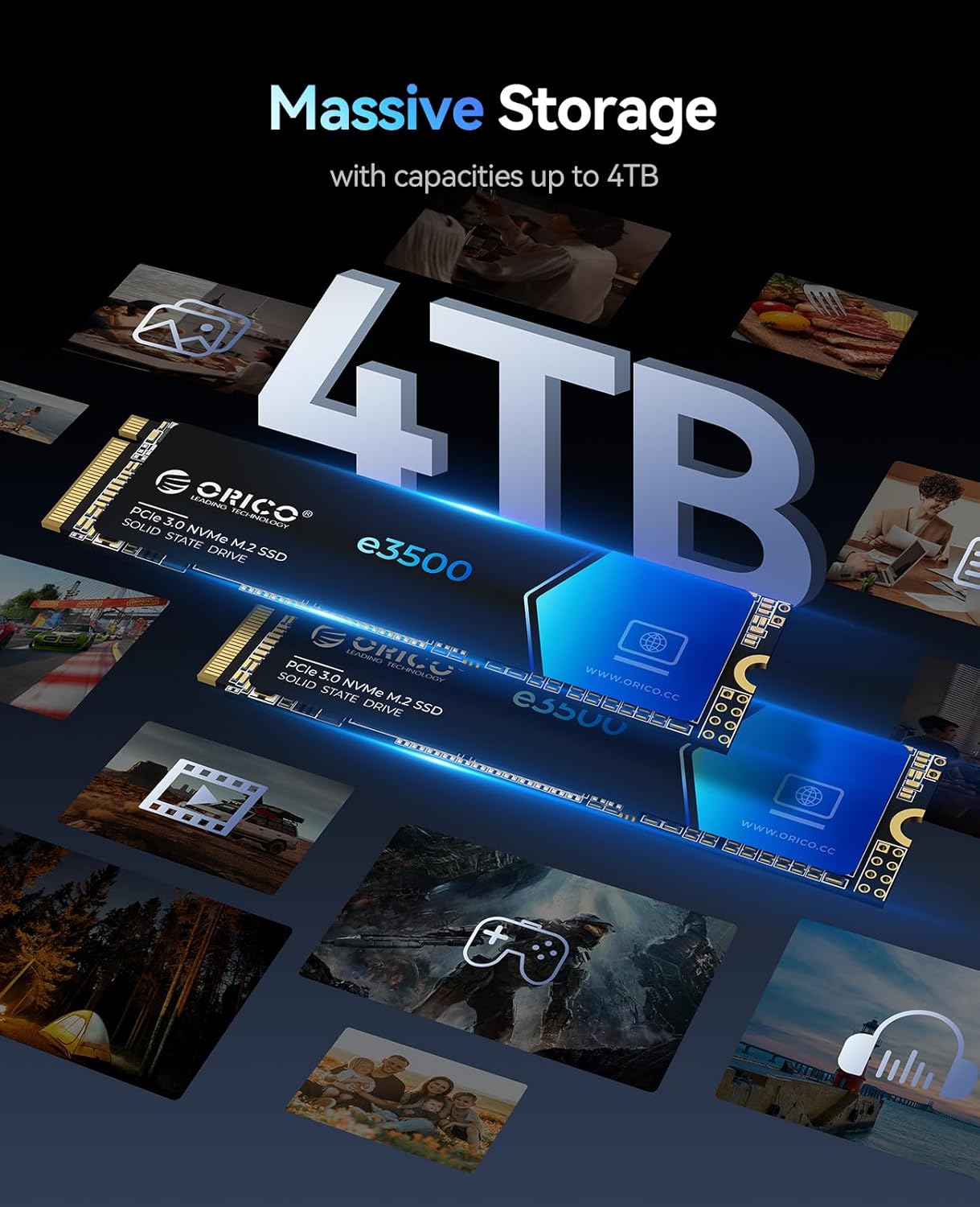 - Large Capacity, Easy Installation: Supporting the NVMe 1.4 standard, ORICO SSD M.2 is compatible with desktops, and laptops. With up to 4TB of spacious storage, it can easily accommodate large files, games, and creative projects, providing ample space for your needs. Ascrew and a screwdriver are included for hassle-free installation