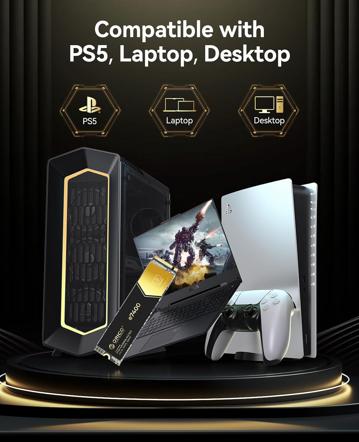 - [PS5 Compatible] - The ORICO e7400 M.2 NVMe SSD works seamlessly with PS5, desktops, and laptops, offering versatile compatibility to tackle gaming, work, and creative tasks effortlessly