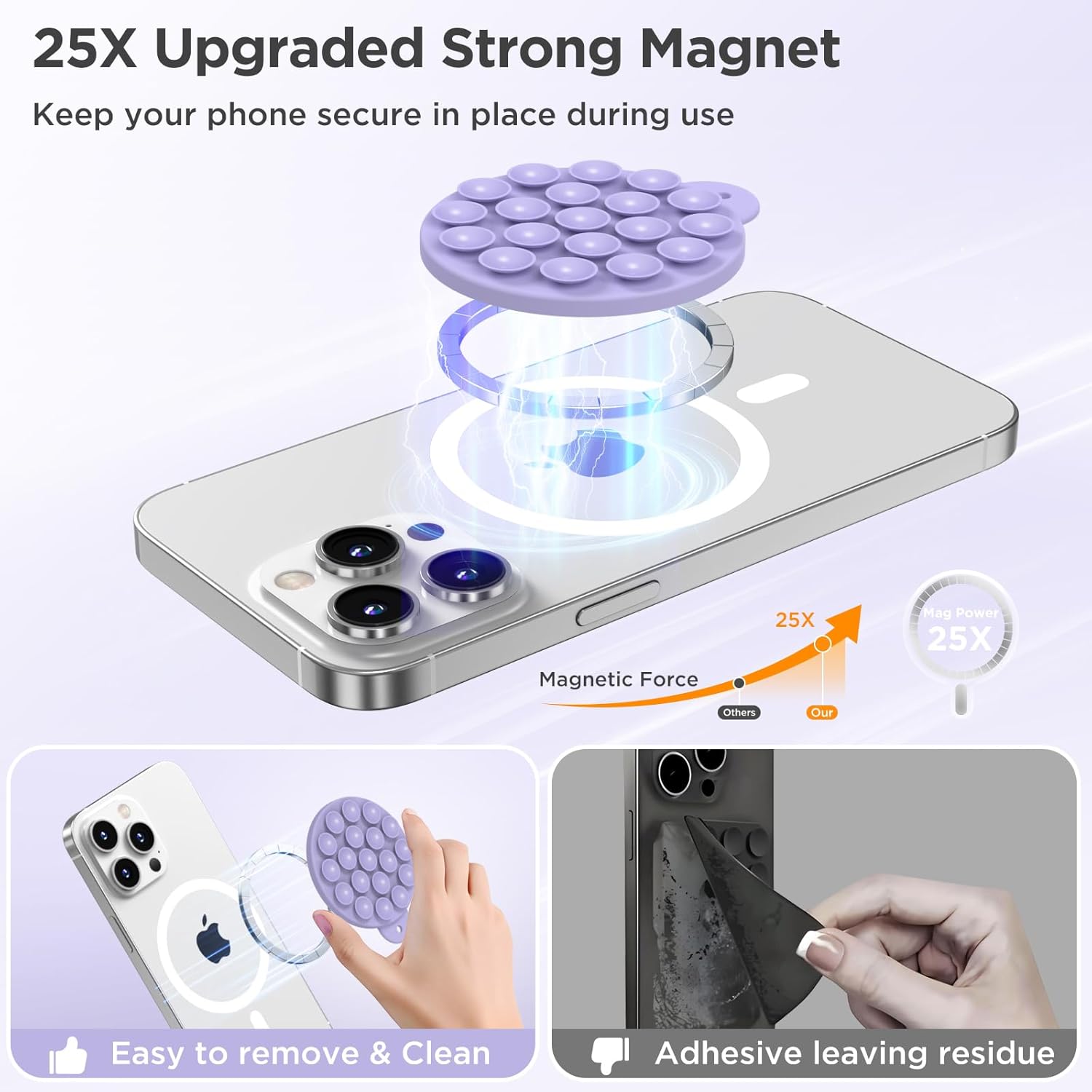 Magnetic Suction Cup Phone Mount for MagSafe Case, Silicone Hands-Free Grip Holder for iPhone and Android, Mirror Shower Phone Stand for Makeup FaceTime Gym Kitchen Bathroom, Lilac Purple