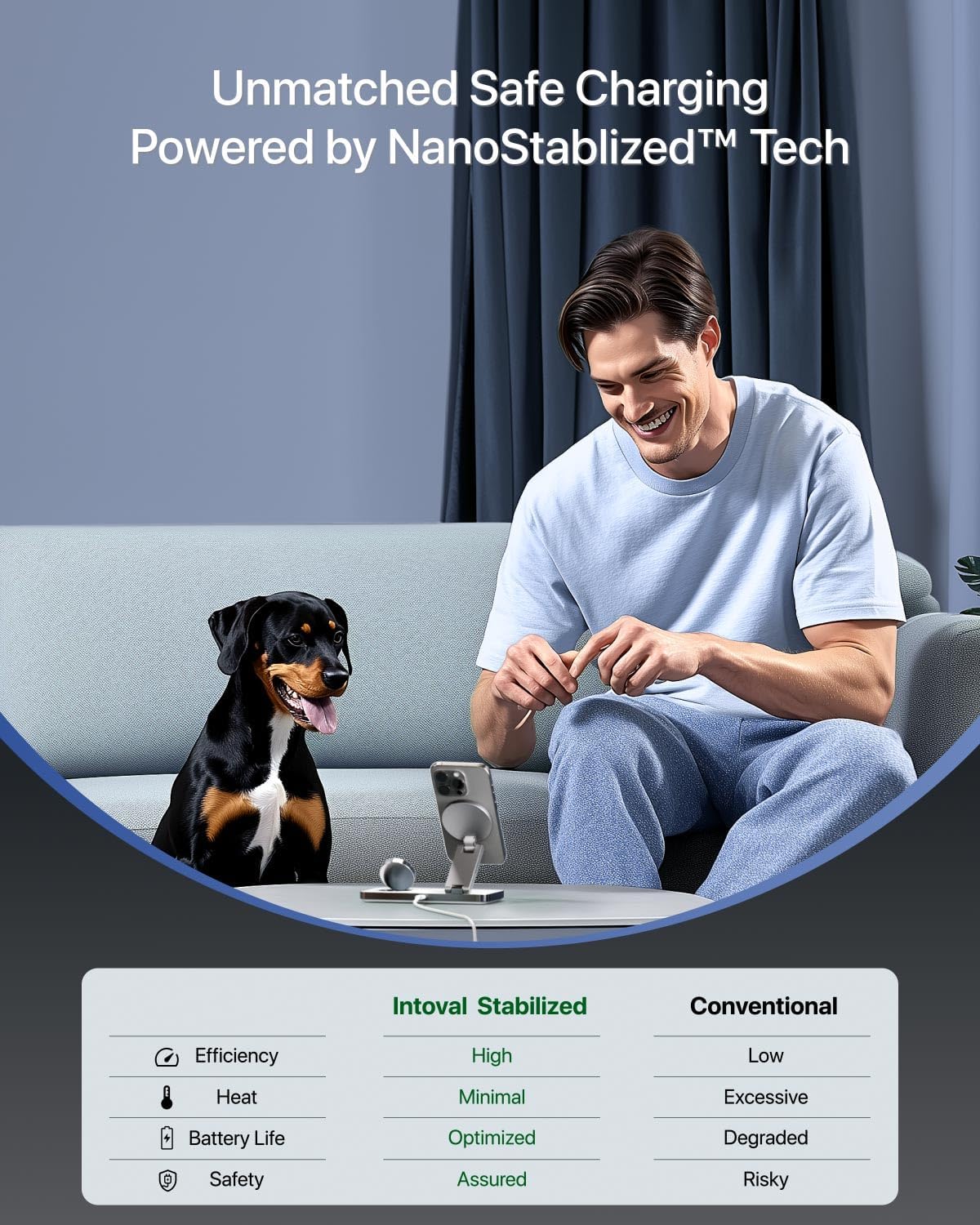 - ๐๐๐ฏ๐๐ง๐๐๐ ๐๐๐ง๐จ๐๐ฎ๐ฅ๐ฌ๐ ๐๐๐๐๐ญ๐ฒ:Powered by NanoPulse Monitoring, the Intoval 3-in-1 charger provides intelligent protection against overheating, overvoltage, and overtemperature. Built-in safeguards help maintain your deviceโs battery health and extend its overall lifespan. Charge with confidence, knowing your devices are protected every step of the way.