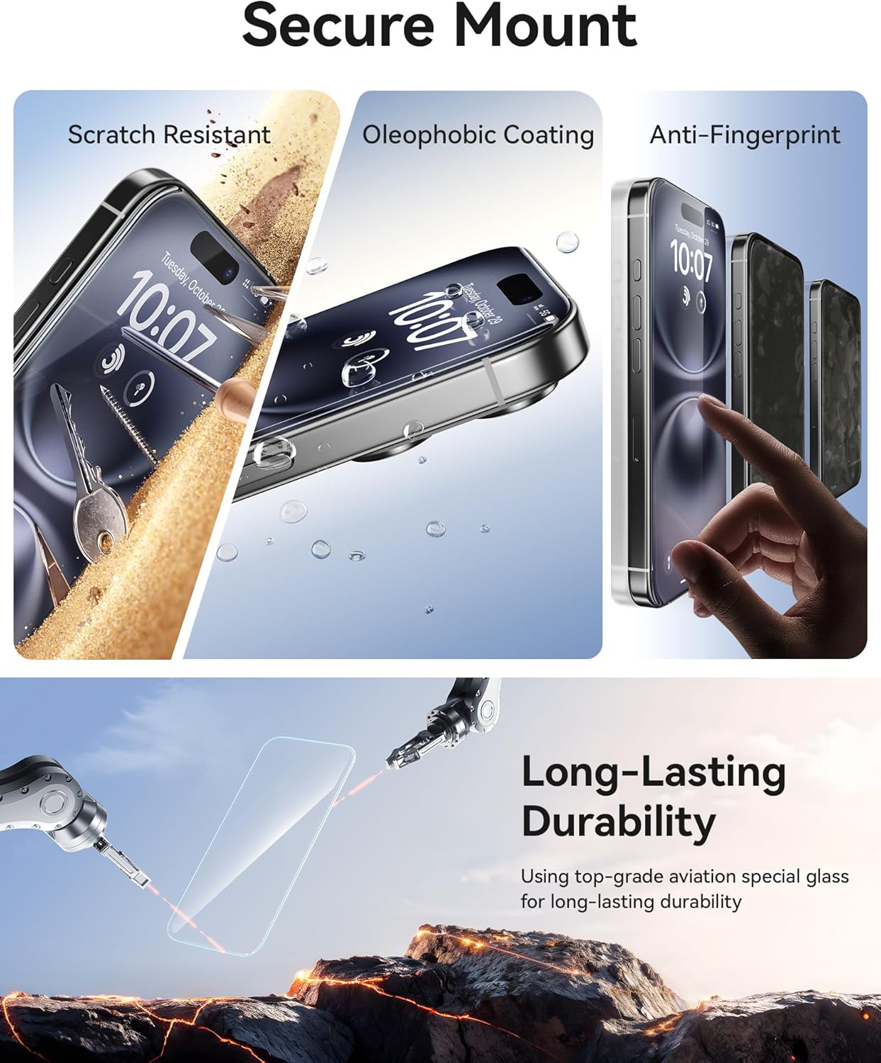 - ăAnti-Fingerprint Processing and Smooth Touch Finishă: Not prone to fingerprints and dirt adhesion. Even stubborn smudges and fingerprints caused by oil and moisture can be easily wiped off. Additionally, the touch experience is very smooth, ensuring the best experience for daily activities such as watching TV shows, working in the office, or gaming. You will always enjoy the beautiful display of the iPhone 16/15 Plus
