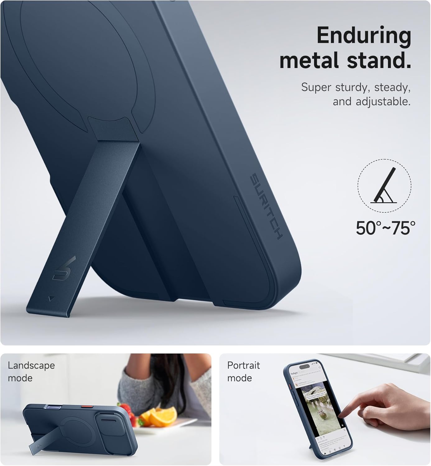 - 【Adjustable kickstand】: The built-in aluminum-alloy kickstand is tough, steady, and adjustable up to 75°. This feature is perfect for hands-free viewing of videos, reading, or video calls in both landscape and portrait orientations