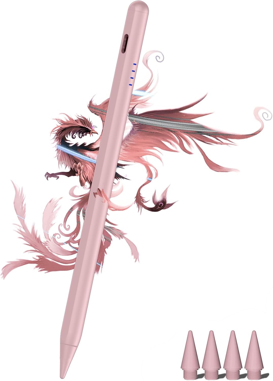 - ăBattery Indicator / Type-C Chargingă This iPad pen uses the popular Type-C charging port for charging, and can be used for 8 hours after 35 minutes of charging. When charging, four lights on the side of the stylus will light up gradually, each light represents 25% of the power, so you can observe the charging status and power usage in real time, and keep track of the remaining power at all times to ensure that you don't drop the ball during critical work time. The iPad stylus has a sleep function. When you forget to turn it off, keep it still for 5 minutes and the stylus will automatically turn off, effectively saving battery life