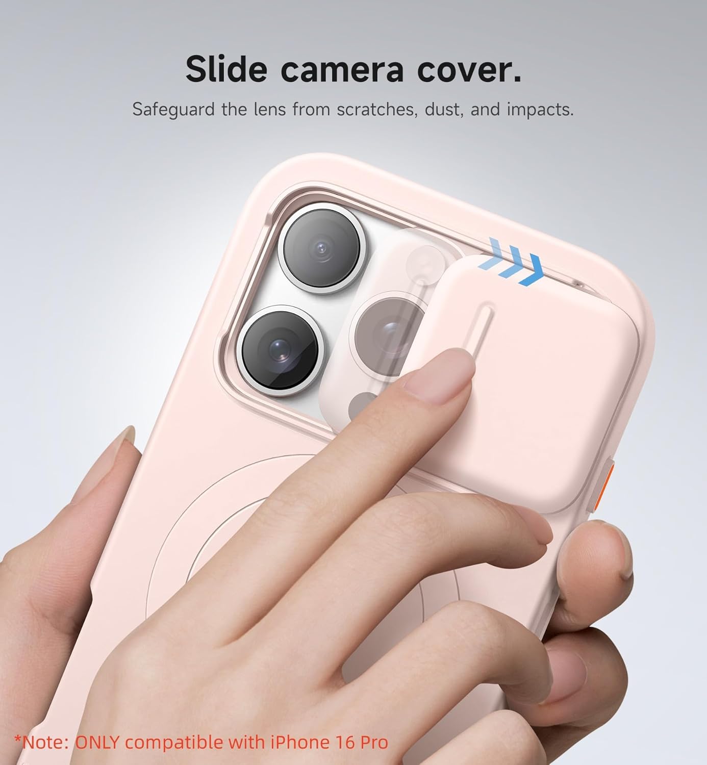 - 【Smooth slide camera cover】: Made from hard PC material with a smooth-gliding track, our camera cover slides effortlessly and locks securely when closed, providing the lens with seamless protection against dust, spills, and damage (ONLY compatible with iPhone 16 Pro)