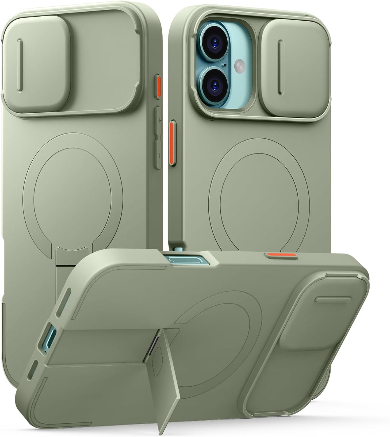SURITCH for iPhone 16 Plus Case with Magnetic Camera Slide Cover and Adjustable Kickstand, Compatible with MagSafe, Shockproof Bumper Case Slim Protective Cover for iPhone 16 Plus 6.7 Inch, Green