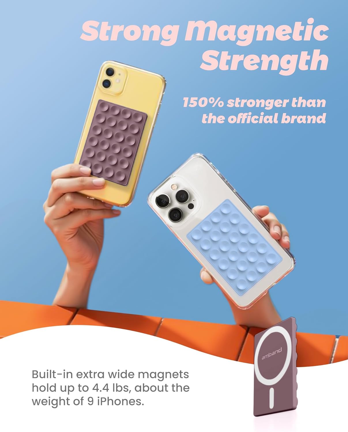 amBand Magnetic Suction Phone Mount for MagSafe Case, Silicone Cup Sticky Grip Holder for iPhone, Removable Hands-Free Selfie/Video for TikTok Influencers, Women Gift, Smoke Violet