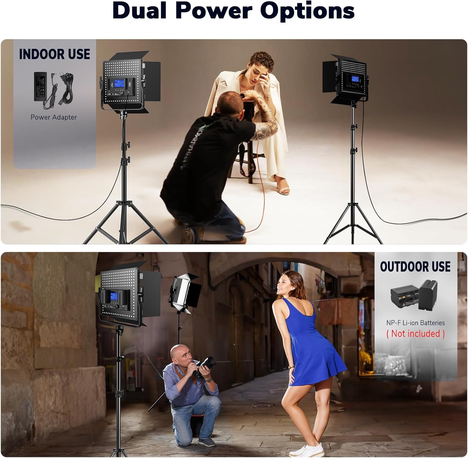 - 【Dual Power Options】Our photo light supports plug-in power for indoor photography and NP-F battery power for outdoor photography, making it practical and multifunctional. (Batteries not included, NP-F950 or higher is recommended).