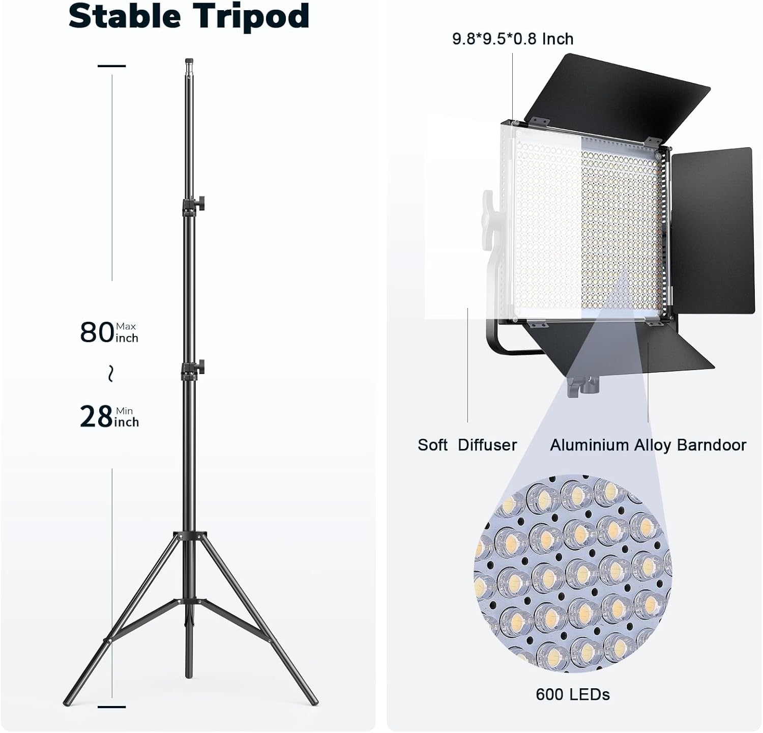 - 【Bi-Color Video Lighting Kit】Pixel K80 bi-color light equipped with 600pcs LEDs (300pcs white/300pcs warm LEDs),45W studio light features a maximum illuminance of 4500 LM/1m, color temperature range adjustable from 3000K~8000K, 0~100% dimming range, and ultra-high CRI 97+ helps to restore and enrich the color light object, providing you a natural and vivid shooting effect, perfect for vlogging, portraits, weddings, product photography, video gaming and location shooting.