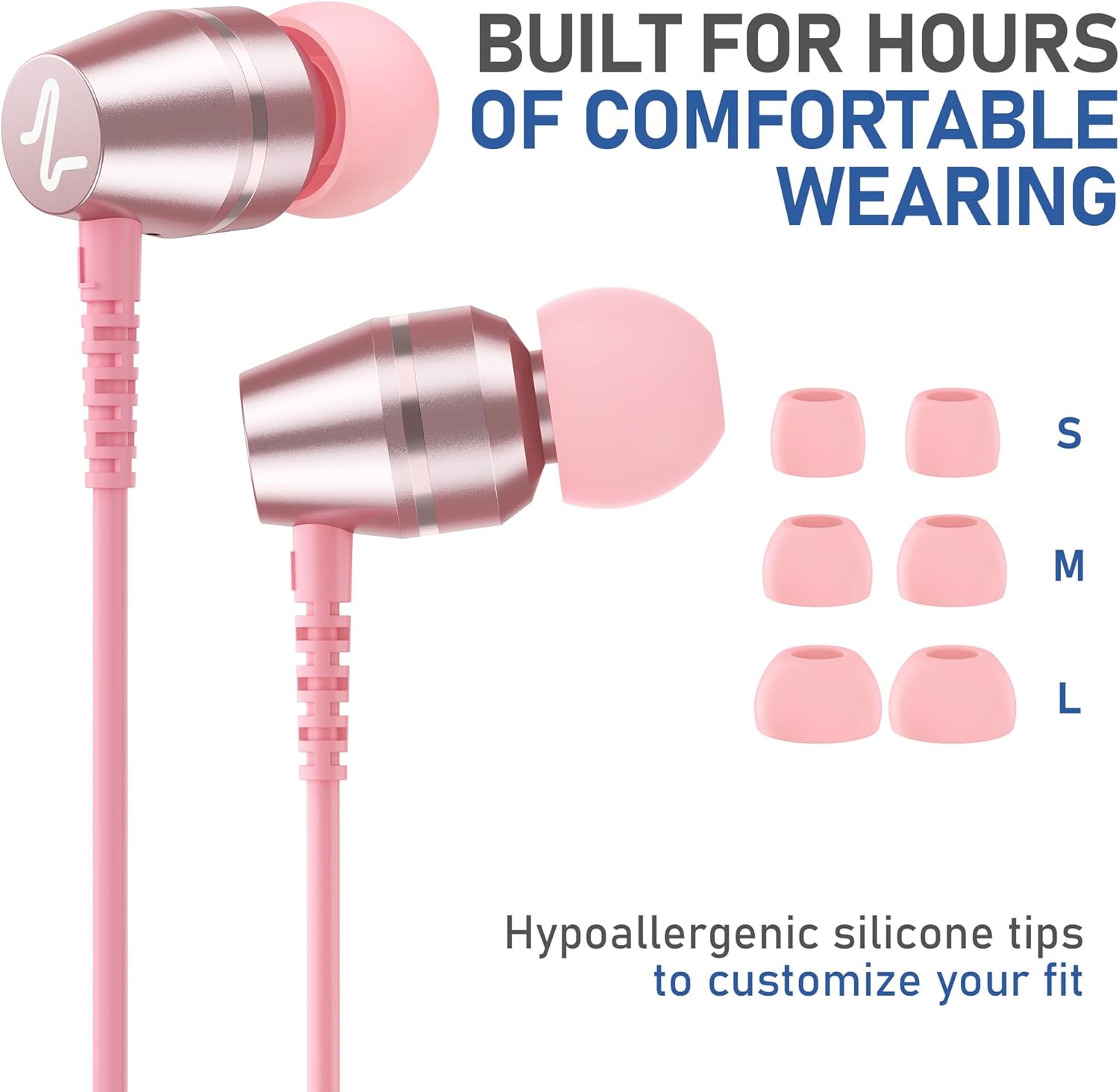 - COMFORTABLE AND SECURE FIT. Our wired earphones were designed with comfort in mind. The soft earpiece fits snugly in your ear without giving you that “aching” feeling after wearing them for an hour
